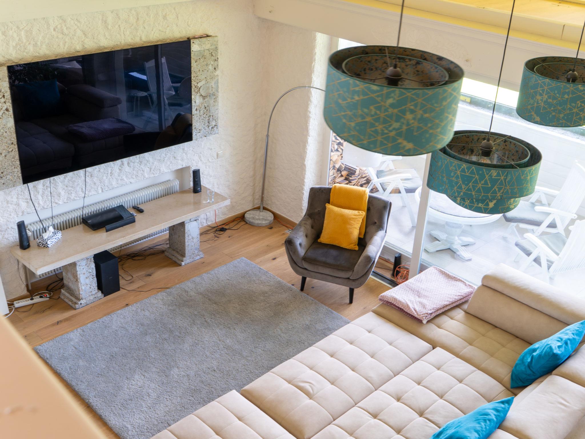 "Penthouse Deluxe", 3-room penthouse 120 m2. Luxurious and cosy furnishings: living room with 1 double sofabed (180 cm, length 200 cm), cable TV (flat screen). 1 double bedroom. Kitchen (oven, dishwasher, 4 induction hot plates, toaster, kettle, microwave, electric coffee machine). Bath/shower/WC. Heating. Large terrace 40 m2. Terrace furniture. Very beautiful panoramic view of the lake. Facilities: Internet (WiFi, free). Please note: non-smokers only. Fantastic, luxurious penthouse with breathtaking views of Lake Wolfgang.