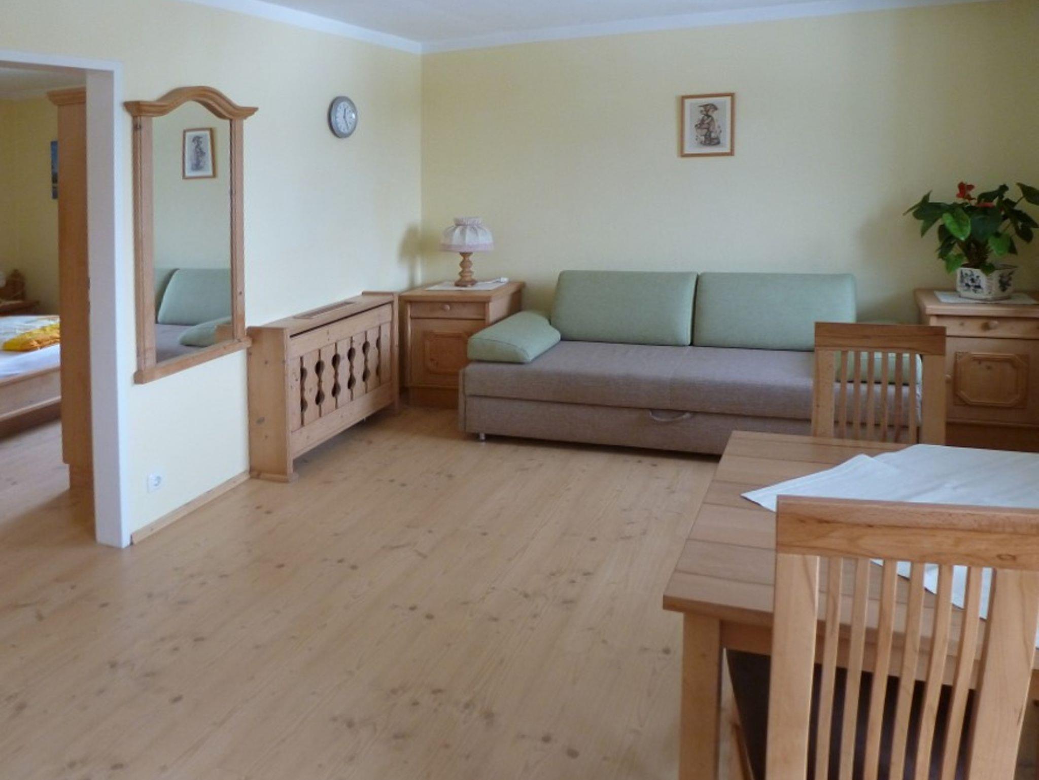 Im Landhausstil und trotzdem modern eingerichtete Ferienwohnung mit herrlichem Ausblick vom Balkon. Gemütliche Schlafcouch in der Wohnküche.