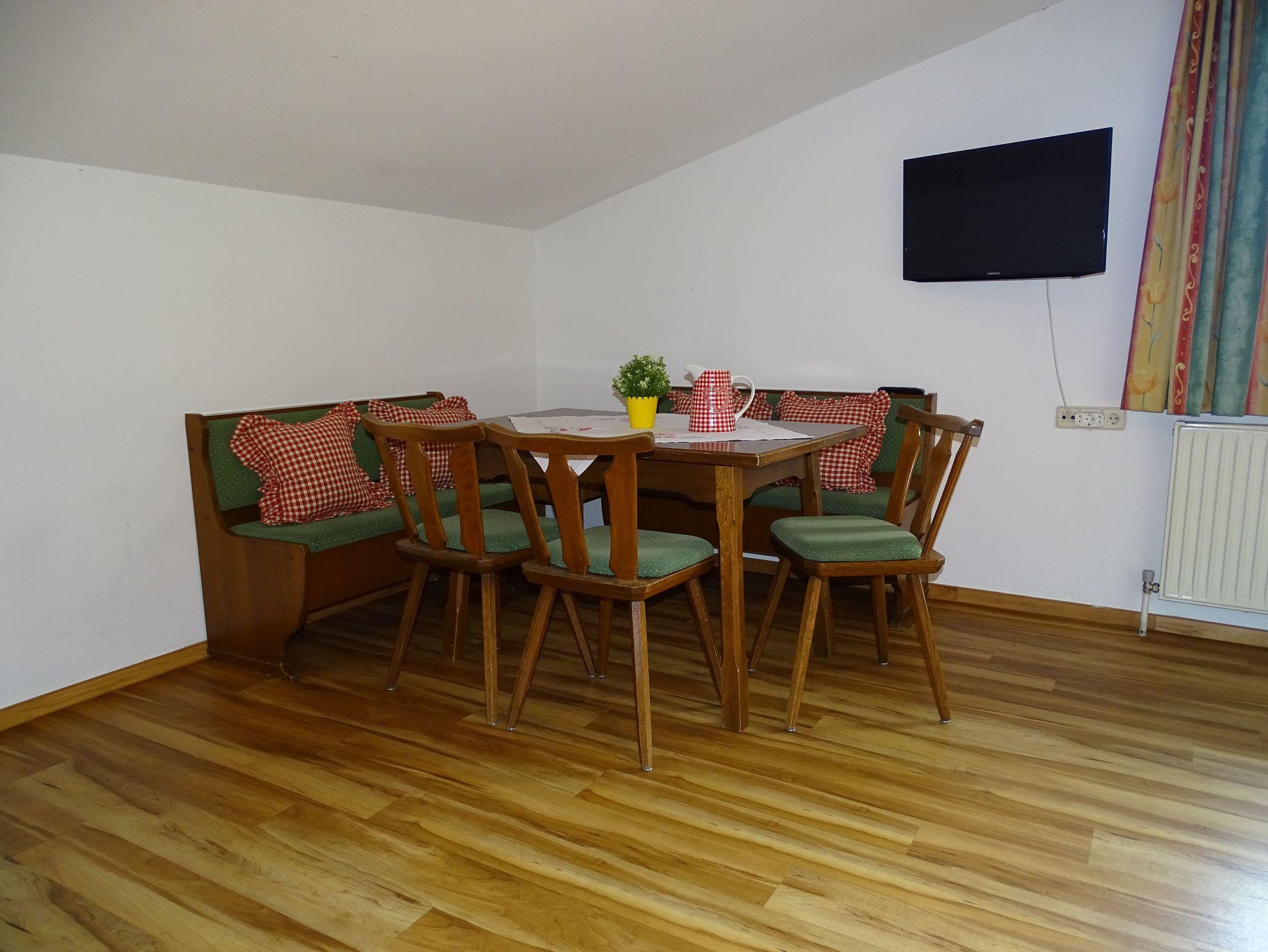 Im Aufenthaltsraum gibt es genügend Platz, um am Abend noch einmal gemütlich beisammen zu sitzen. Die Skier können im Skikeller mit elektrisch beheiztem Skischuhtrockner abgestellt werden. 1 kostenfreier Parkplatz pro Ferienwohnung ist direkt vor dem Haus. Ein Garagenplatz in der Tiefgarage kann auf Wunsch und Anfrage zusätzlich gebucht werden (3 Euro pro PKW und Tag, je nach Verfügbarkeit). Ein Hund pro Wohnung ist gegen Aufpreis willkommen.