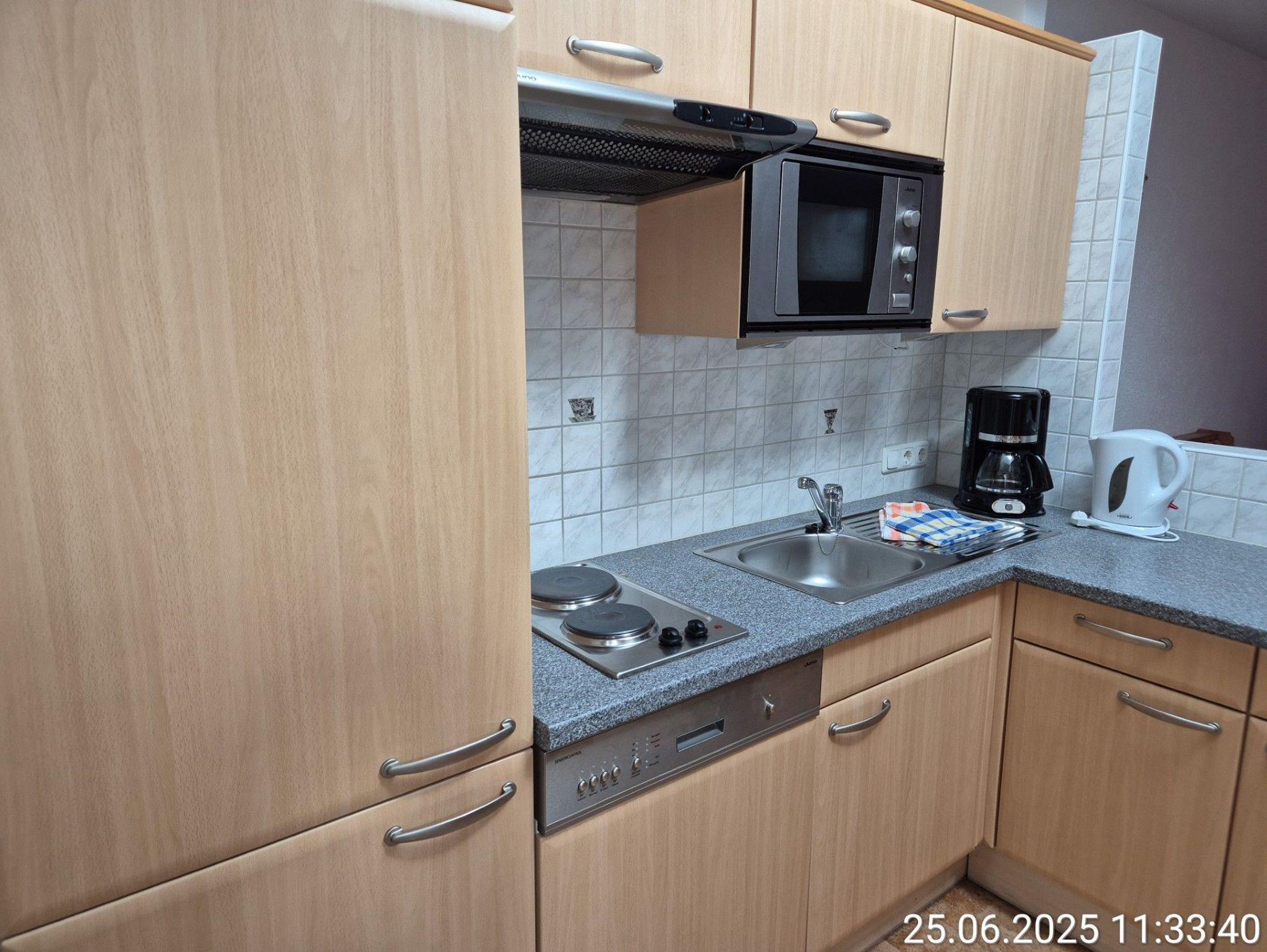 Diese Ferienwohnung verfügt über ein Schlafzimmer, ein Wohnschlafzimmer, Infrarotwärmeliege, DU/WC getrennt, Südbalkon , geräumige Küche mit Spülmaschine, Mikro, schnelles Internet (Glasfaser) 57m²
