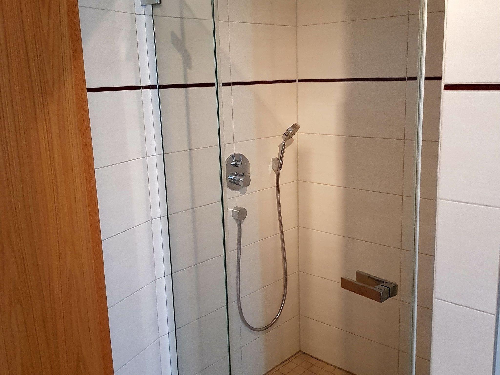 Badezimmer mit Dusche und WC, freundliche Einrichtung mit Liebe zum Detail.