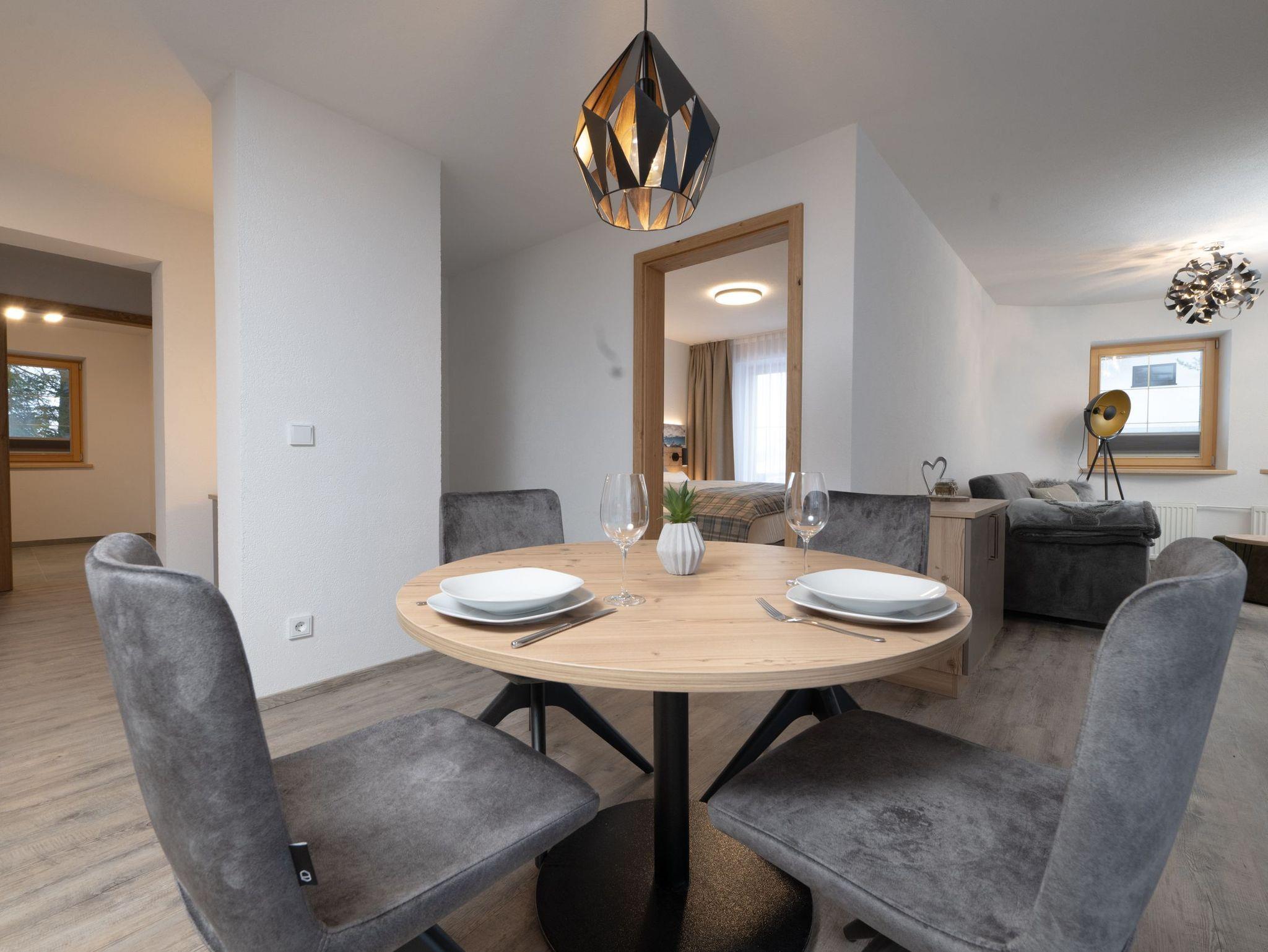 Sie blicken direkt in die umliegende Bergwelt und genießen den Komfort unserer hochwertig ausgestatteten Ferienwohnungen im rustikal-modernen Alpin-Style.