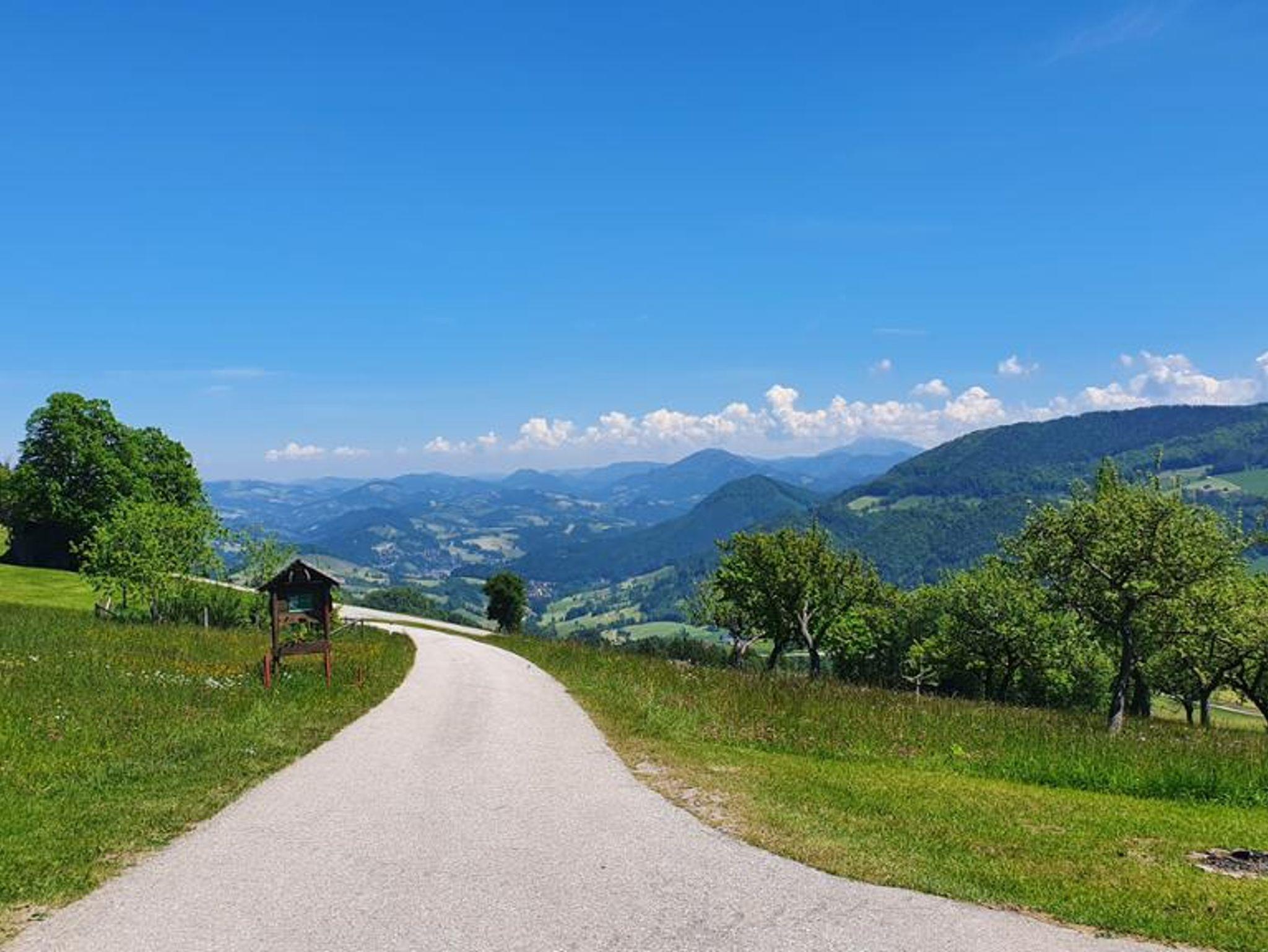 Im Mostviertel auf 820 Metern Seehöhe bietet der Hirschberg einen unvergleichlichen Weitblick in die Ybbstaler Alpen. Die rundum freie Sicht erstreckt sich über den Großen Ötscher, den Prochenberg, das Gesäuse und den Sonntagberg. An klaren Tagen reicht der Blick sogar bis nach Maria Taferl.