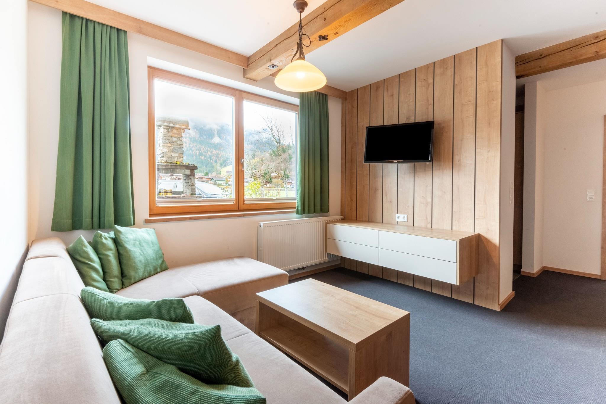 Denna mysiga semesterlägenhet för max 6 personer ligger i ett semesterhus i den lilla staden Wald im Pinzgau i Salzburgerland, nära Königsleiten, den närliggande nationalparken Hohe Tauern och skidområdet Zillertal Arena. De berömda Krimmler-vattenfallen är också värda ett besök! Förutom ett rymligt vardagsrum med ett modernt öppet kök, har denna semesterlägenhet 2 sovrum, alla med eget badrum. I det rymliga vardagsrummet finns möjlighet för den 5:e och/eller 6:e personen att sova på en bäddsoffa. Lägenheten har egen terrass och även tillgång till gemensamma faciliteter. Tänk till exempel på en fotbollsmatch i Sky Sports Bar, en omgång bordtennis eller ett uppfriskande dopp i den gemensamma utomhuspoolen (öppen från början av juni till slutet av september). Det är också möjligt att njuta av en omfattande frukost eller använda hälsofaciliteterna som bastu och solarium (båda mot en avgift). I april/maj och november/början av december finns ingen personal och tyvärr kan ingen frukost erbjudas. I omedelbar närhet av semesterhuset (ca 11 km från centrum) ligger skidområdet Zillertal Arena med 150 kilometer pister och 52 liftar. Med städerna Zell am Ziller, Gerlos, Königsleiten, Wald och Krimml/Hochkrimml sträcker sig detta skidområde från tyrolska Zillertal till Salzburgs Pinzgau och är mångsidigt, familjevänligt och snösäkert. Området runt Wald im Pinzgau erbjuder ett brett utbud av fritids- och rekreationsaktiviteter under alla årstider och det omväxlande landskapet har något att erbjuda för alla.