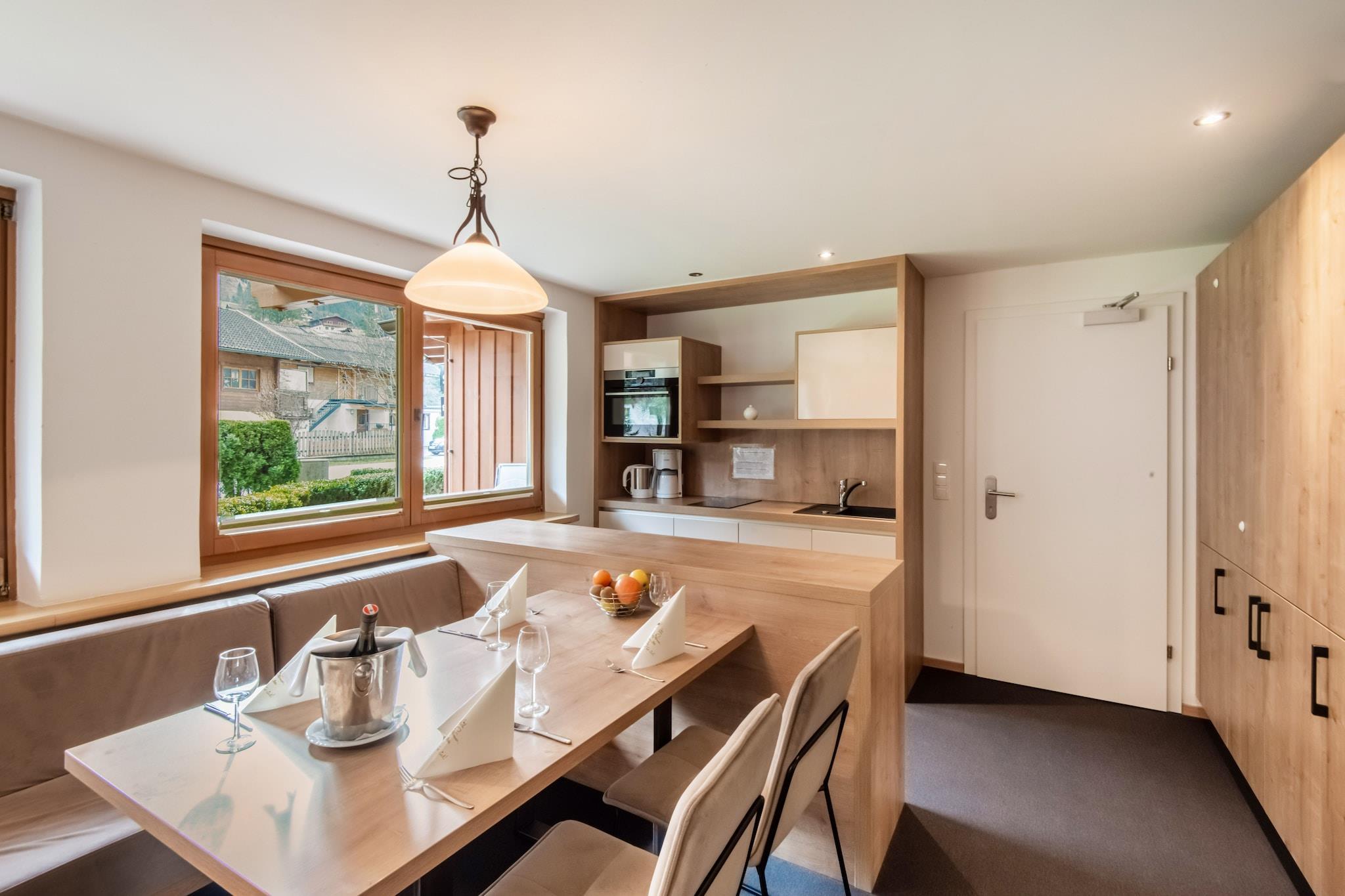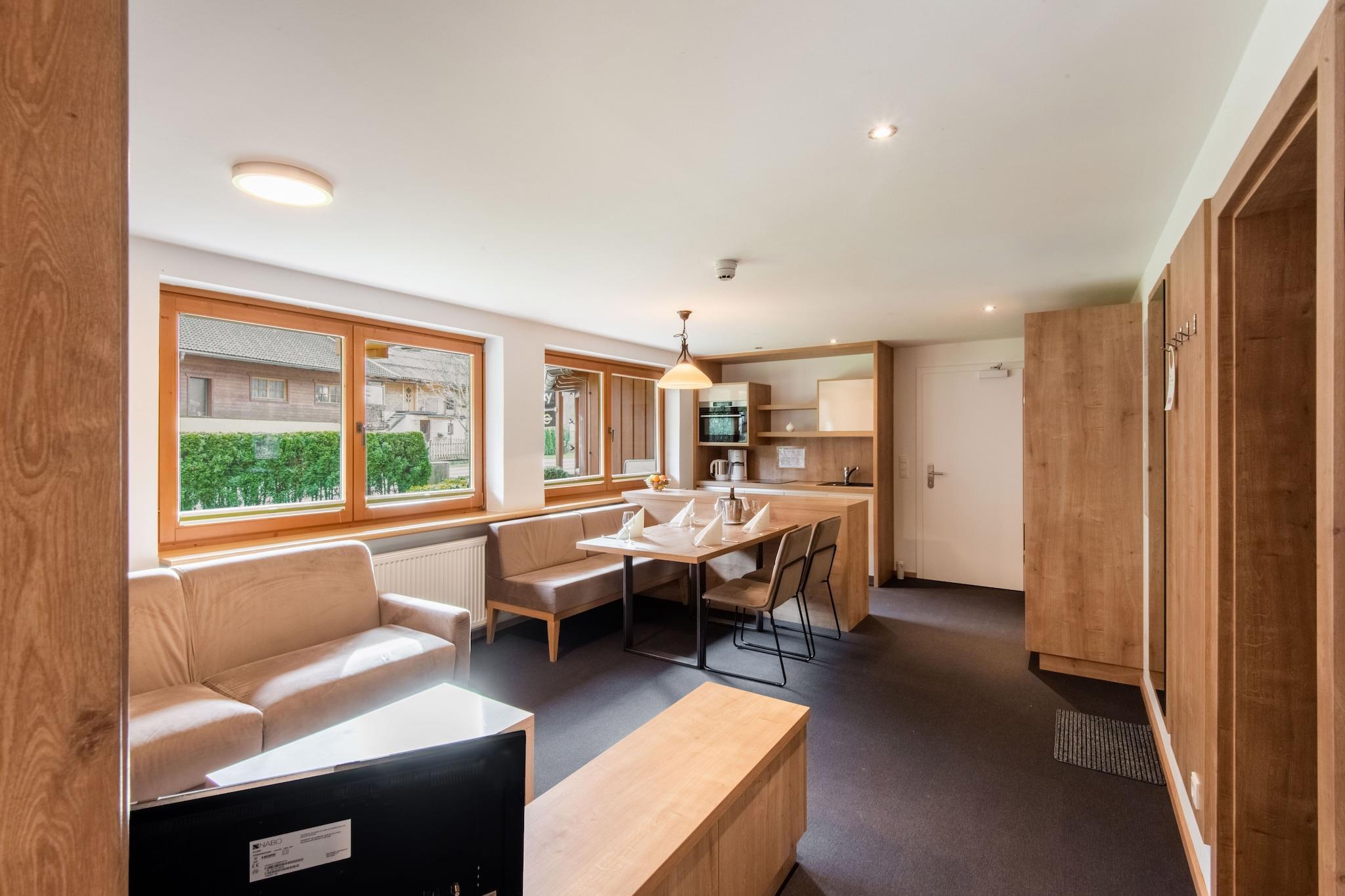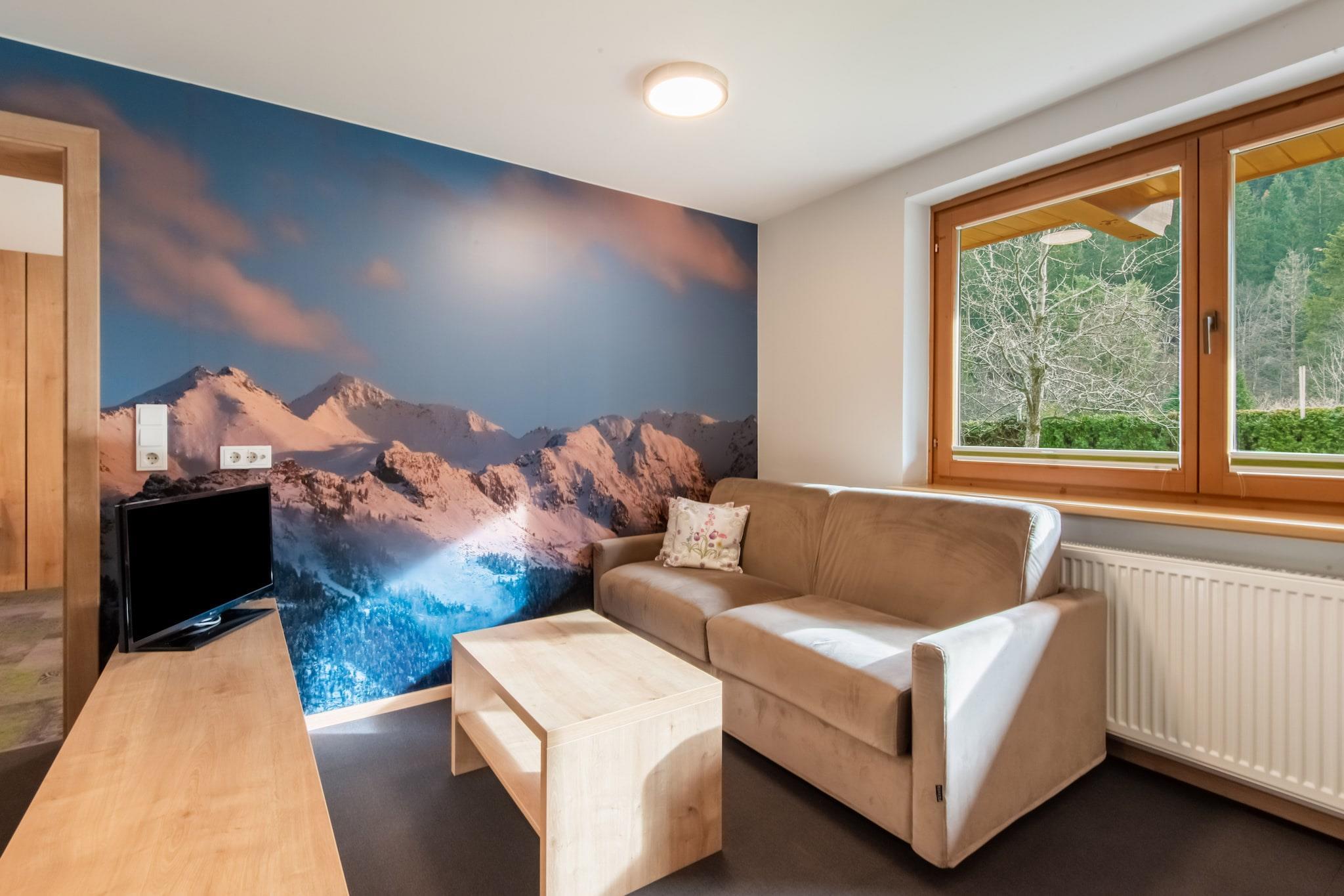 Denna moderna semesterlägenhet för max 5 personer ligger i ett semesterhus i den lilla staden Wald im Pinzgau i Salzburgerland. Området erbjuder många naturattraktioner, Krimmler-vattenfallen och ett brett utbud av vandrings- och cykelleder. Lägenheten är optimalt utrustad och erbjuder ett rymligt vardagsrum (med bäddsoffa), ett öppet, välutrustat kök, ett sovrum med en dubbelsäng och en enkelsäng, ett badrum och en vacker terrass. Lägenheten har även tillgång till gemensamma faciliteter. Tänk till exempel på en fotbollsmatch i Sky Sports Bar, en omgång bordtennis eller ett uppfriskande dopp i den gemensamma utomhuspoolen (öppen från början av juni till slutet av september). Det är också möjligt att njuta av en omfattande frukost eller använda hälsofaciliteterna som bastu och solarium (mot en avgift). I april/maj och november/början av december finns ingen personal och tyvärr kan ingen frukost erbjudas. I omedelbar närhet av semesterhuset (ca 11 km från centrum) ligger skidområdet Zillertal Arena med 150 kilometer pister och 52 liftar. Med städerna Zell am Ziller, Gerlos, Königsleiten, Wald och Krimml/Hochkrimml sträcker sig detta skidområde från tyrolska Zillertal till Salzburgs Pinzgau och är mångsidigt, familjevänligt och snösäkert. Området runt Wald im Pinzgau erbjuder ett brett utbud av fritids- och rekreationsaktiviteter under alla årstider och det omväxlande landskapet har något att erbjuda för alla.