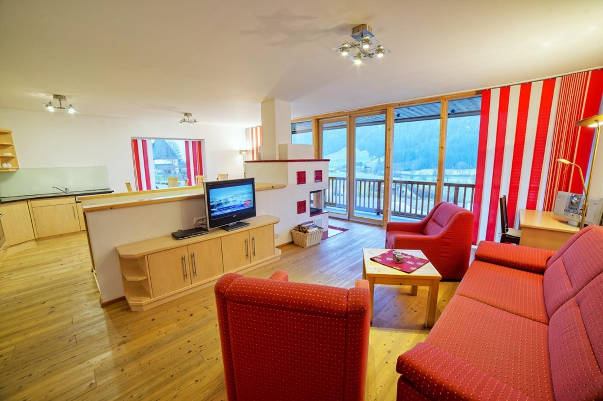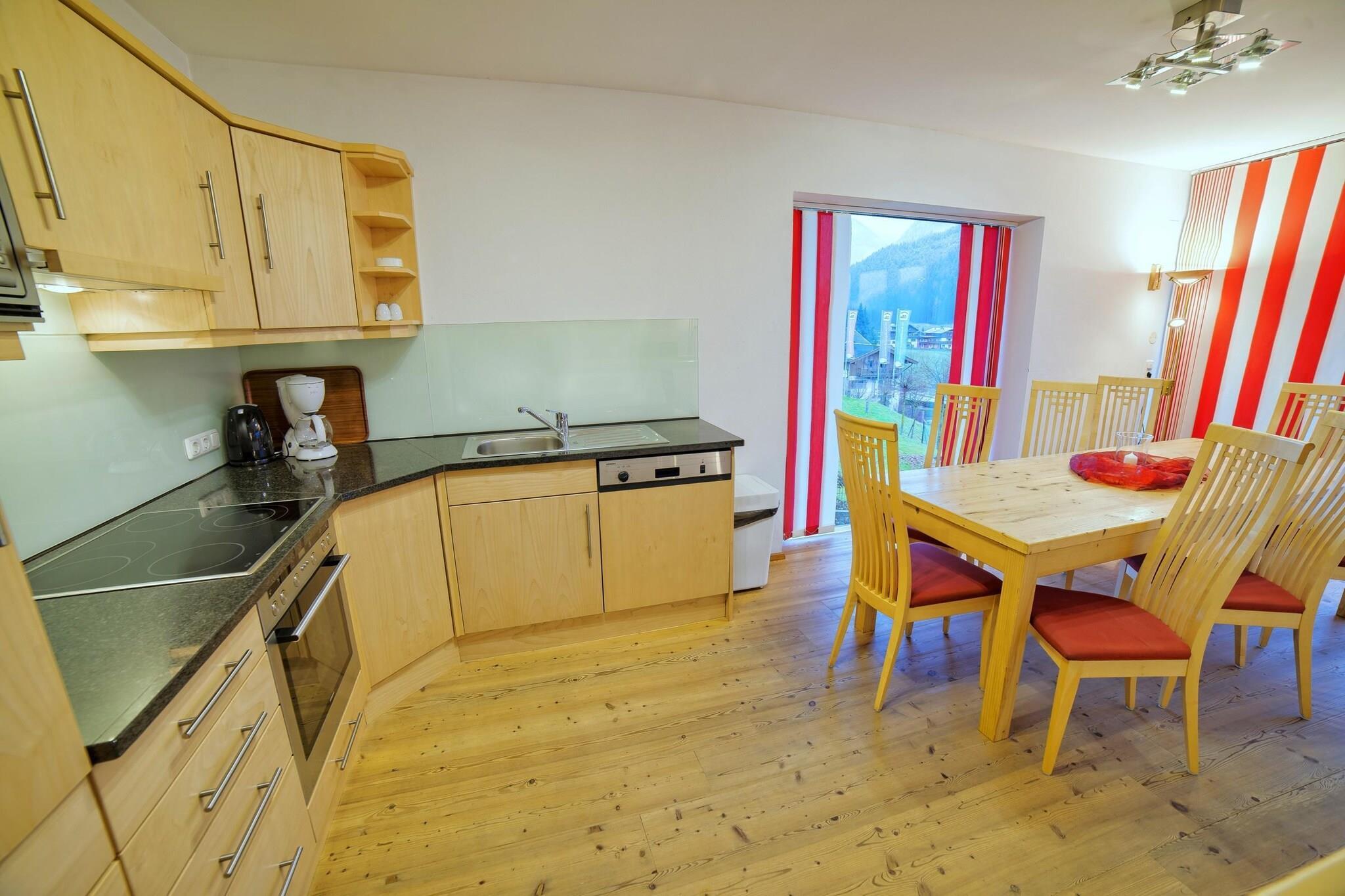 Denna maisonette (ca 110 m2) ligger vid gränsen mellan Salzburgerland och Tirol, i byn Wald (Wald-Königsleiten kommun). Du kan nå maisonetten från parkeringshuset med egen ingång. Inredningen är rymlig och har en riktig österrikisk karaktär tack vare trädetaljerna både inomhus och utomhus. Alla rum ligger på bottenvåningen. Huset har 3 sovrum, 2 badrum och en separat toalett. Vardagsrummet med angränsande öppet kök har även en original kakelugn och du har också en trevlig balkong eller terrass till ditt förfogande med trädgårdsmöbler och naturligtvis en fantastisk utsikt. Du kan använda veden till eldstaden utan extra kostnad .Vad om en åktur med hästar på vintern genom Wald i Pinzgau vinterunderland? Vill du föredra lite mer action? Utöver skidåkning och snowboard kan du också delta i aktiviteter som vandring med snöskor eller kälkning! Det finns Även en gratis skidbussanslutning. På sommaren borde du inte besöka Europas högsta vattenfall, Krimmler Wasserfälle. Om du älskar aktiv semester har du kommit till rätt plats. Cykling, mountainbike, kanotpaddling, skärmflygning och vattenslangar är alla alternativ här. Under din vistelse får du gratis tillgång för några timmar om dagen till den magnifika inomhuspoolen Kristallbad Wald / Königsleiten, som ligger intill maisonetten För en avgift kan du också använda wellness-oasen och restaurangen. En lekplats för de minsta gästerna finns i närheten.Particulars: Eftersom det finns flera maisonetter kan inredningen för varje maisonett skilja sig från bilderna. Tyvärr kan vi inte för att specificera utformningen av det hus du har reserverat i förskott.
