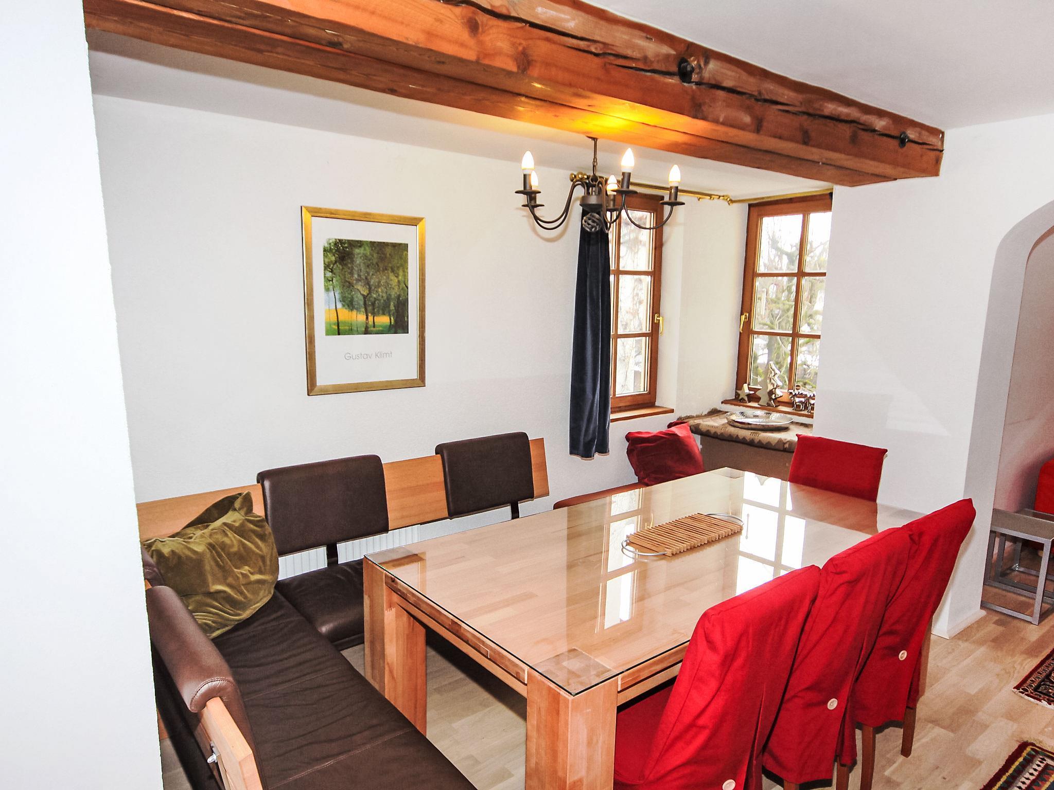 5-room house 150 m2 on 3 levels. Tasteful and cosy furnishings: large living/sleeping room with 1 double bed and cable TV (flat screen), tiled stove. Open dining room. 1 double bedroom. Kitchen (oven, dishwasher, 4 ceramic glass hob hotplates, microwave, electric coffee machine) with dining nook. Exit to the terrace. Bathroom, sep. WC, double hand-basin. On the lower ground floor: entrance hall. Bath/WC. Top floor: 1 double bedroom with 1 double bed and shower/WC. 1 room with sloping ceilings with 1 double sofabed and 1 double bed. Large terrace, garden. Very beautiful view of the mountains and the ski run. Facilities: washing machine, dryer, safe, iron, hair dryer. Internet (WiFi, free). Please note: smoke alarm. First stack of firewood included, each further delivery extra. 50628-000385-2020