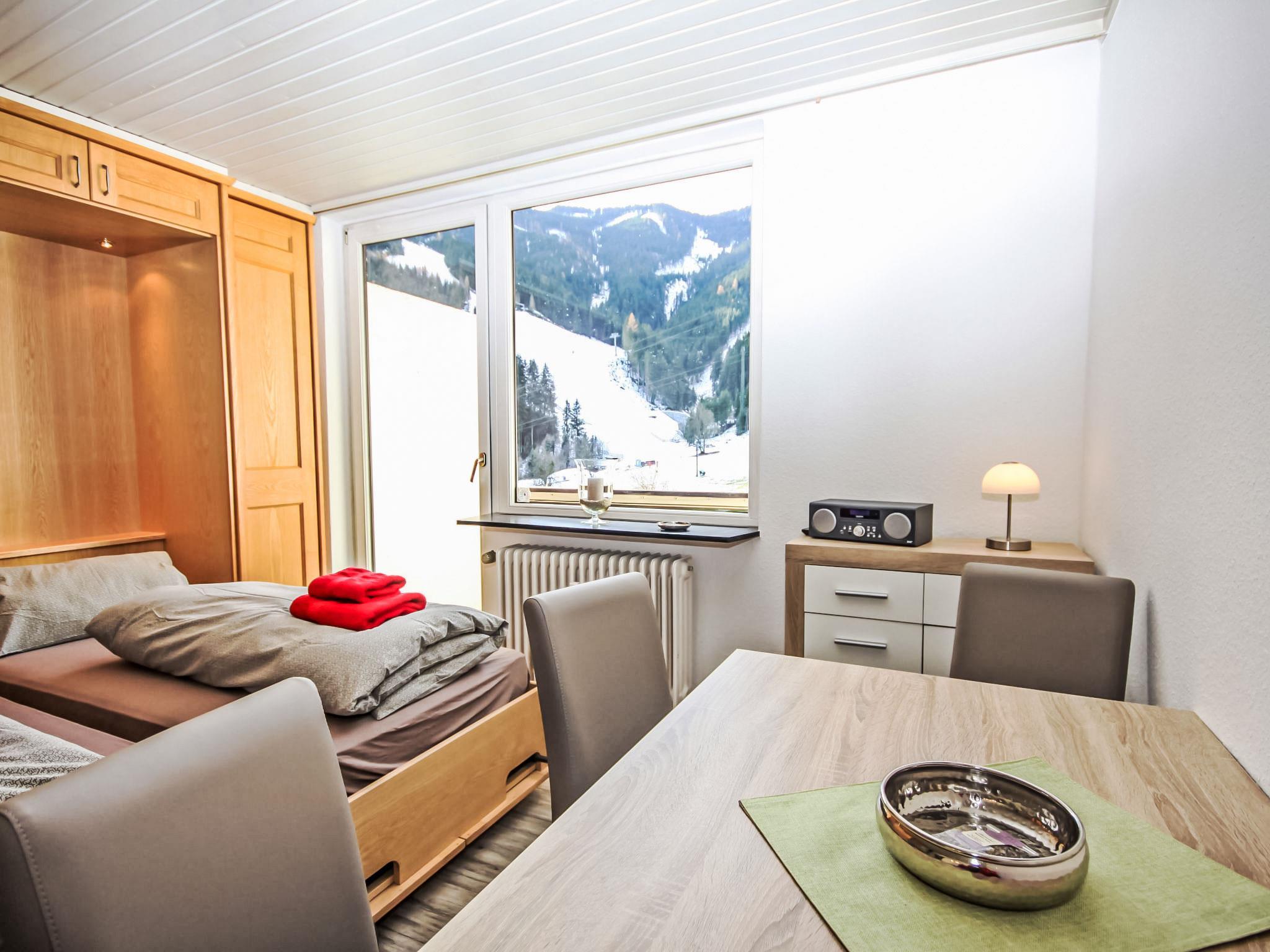 "Max & Moritz Top 16", 1-room apartment 29 m2 on 2nd floor. Partly renovated in 2017, modern and cosy furnishings: entrance hall. Living/sleeping room with 1 sofabed, 2 fold-away beds, dining table and cable TV (flat screen), radio. Exit to the balcony. Kitchen (oven, 4 ceramic glass hob hotplates, microwave, electric coffee machine). Shower/WC. Balcony 6 m2. Beautiful view of the mountains. Facilities: Internet (WiFi, free). Garage on the property. Please note: suitable for families. Non-smokers only. Smoke alarm. 50628-001352-2020