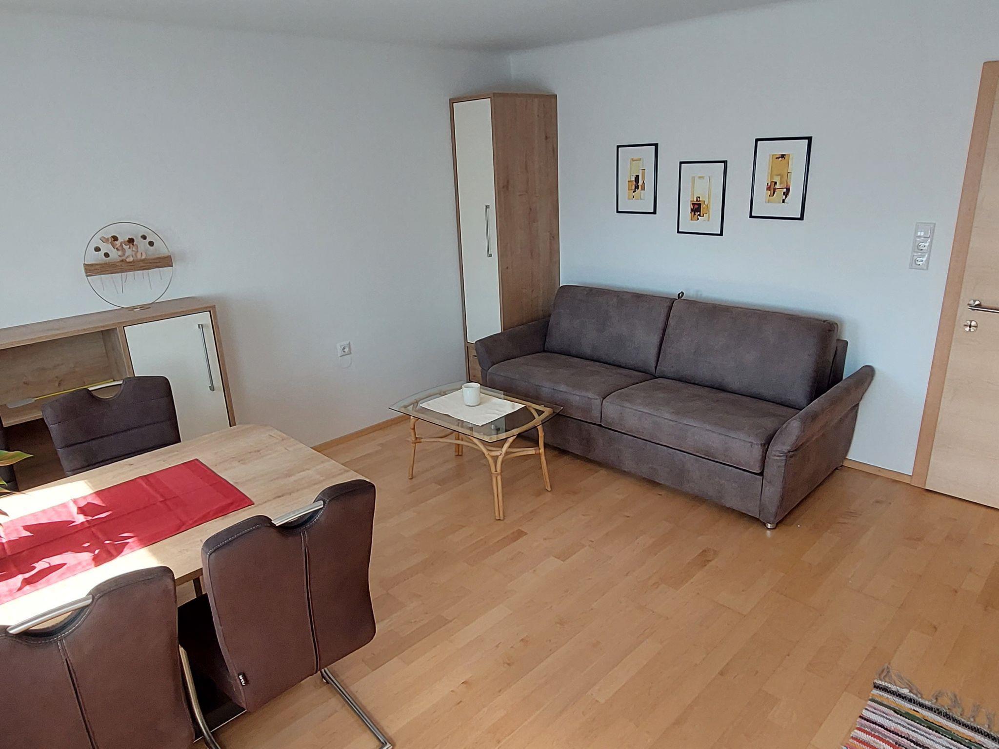 2-room apartment 46 m2, on the ground floor. Cosy furnishings: entrance hall. 1 room with 1 double bed. Exit to the garden, to the balcony. Kitchen-/living room (4 hot plates, oven, dishwasher) with 1 double sofabed and cable TV. Exit to the balcony. Bathroom. Terrace furniture. Beautiful view of the mountains and the countryside. 1 pet/ dog allowed. Due to the renovation of the apartment, there is no longer an additional bed available. Max. number of people 4. 50611-002132-2020
