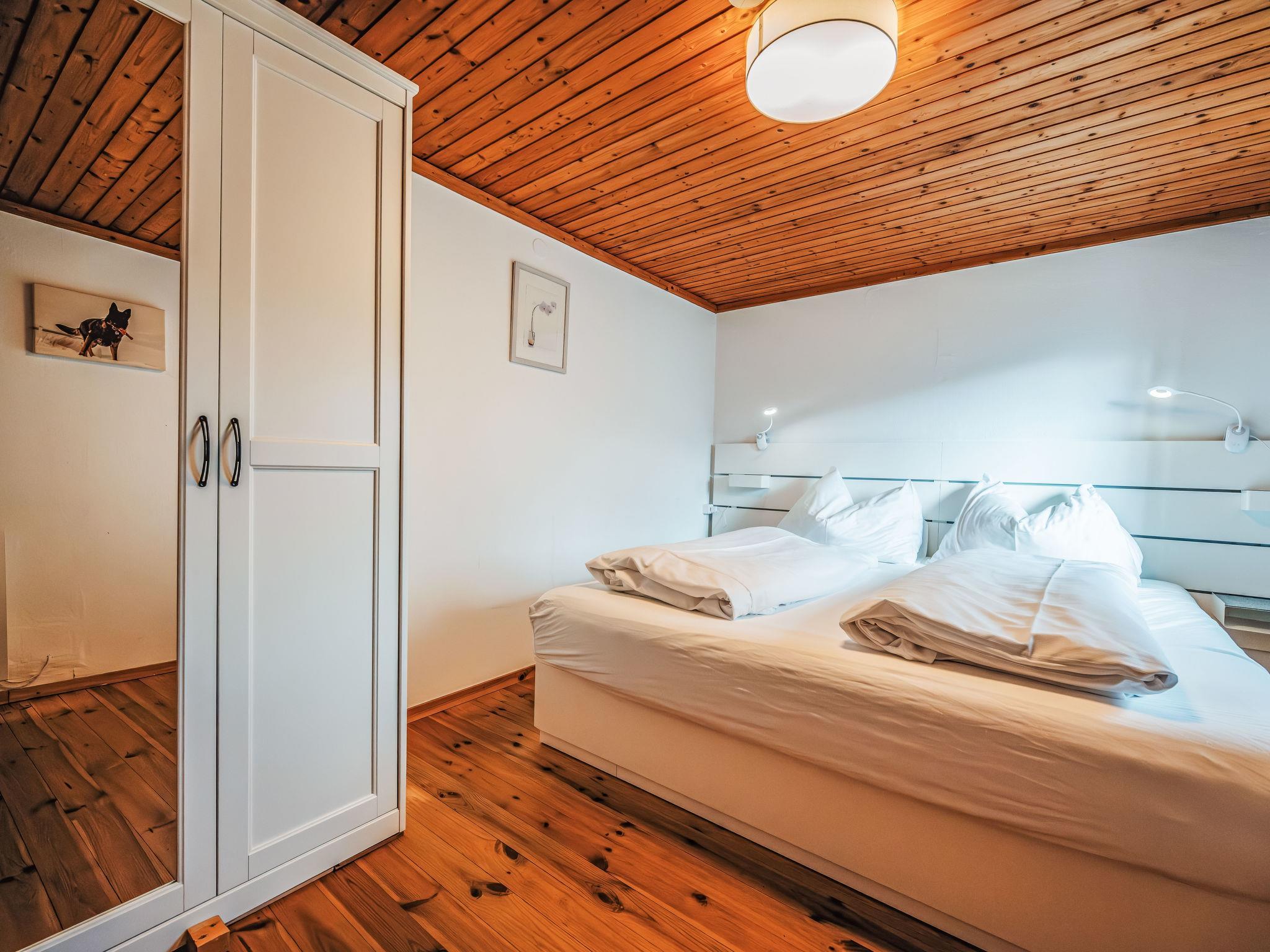 2-room apartment 35 m2. Comfortable and wooden furniture furnishings: living/sleeping room, ceiling height 190 - 200 cm with 1 sofabed, dining table and TV (flat screen), electric heating. 1 double bedroom. Kitchen (4 hot plates, oven, toaster, kettle, microwave, electric coffee machine). Shower/WC. Electric heating. Wooden floors. Small terrace, garden. Terrace furniture. Very beautiful panoramic view of the lake and the countryside. Facilities: Internet (WiFi, free). Please note: suitable for families. Smoke alarm. 50628-001671-2025