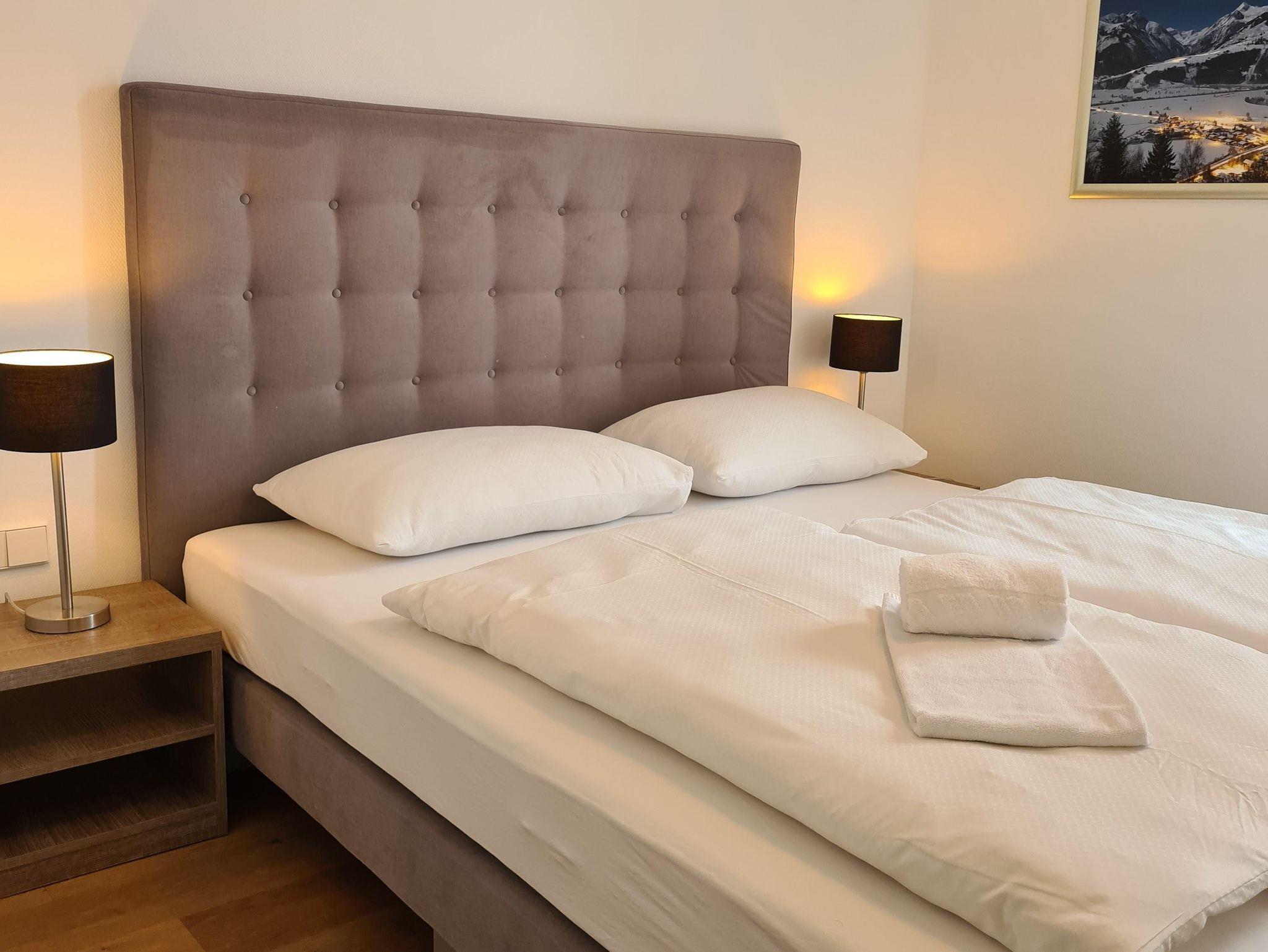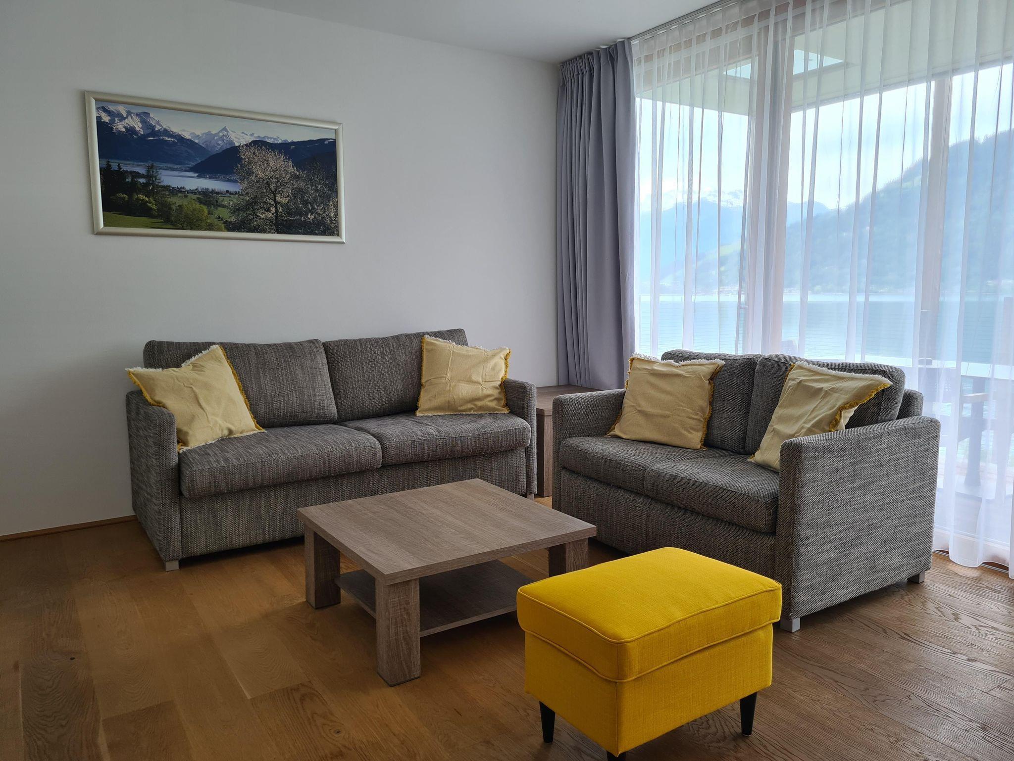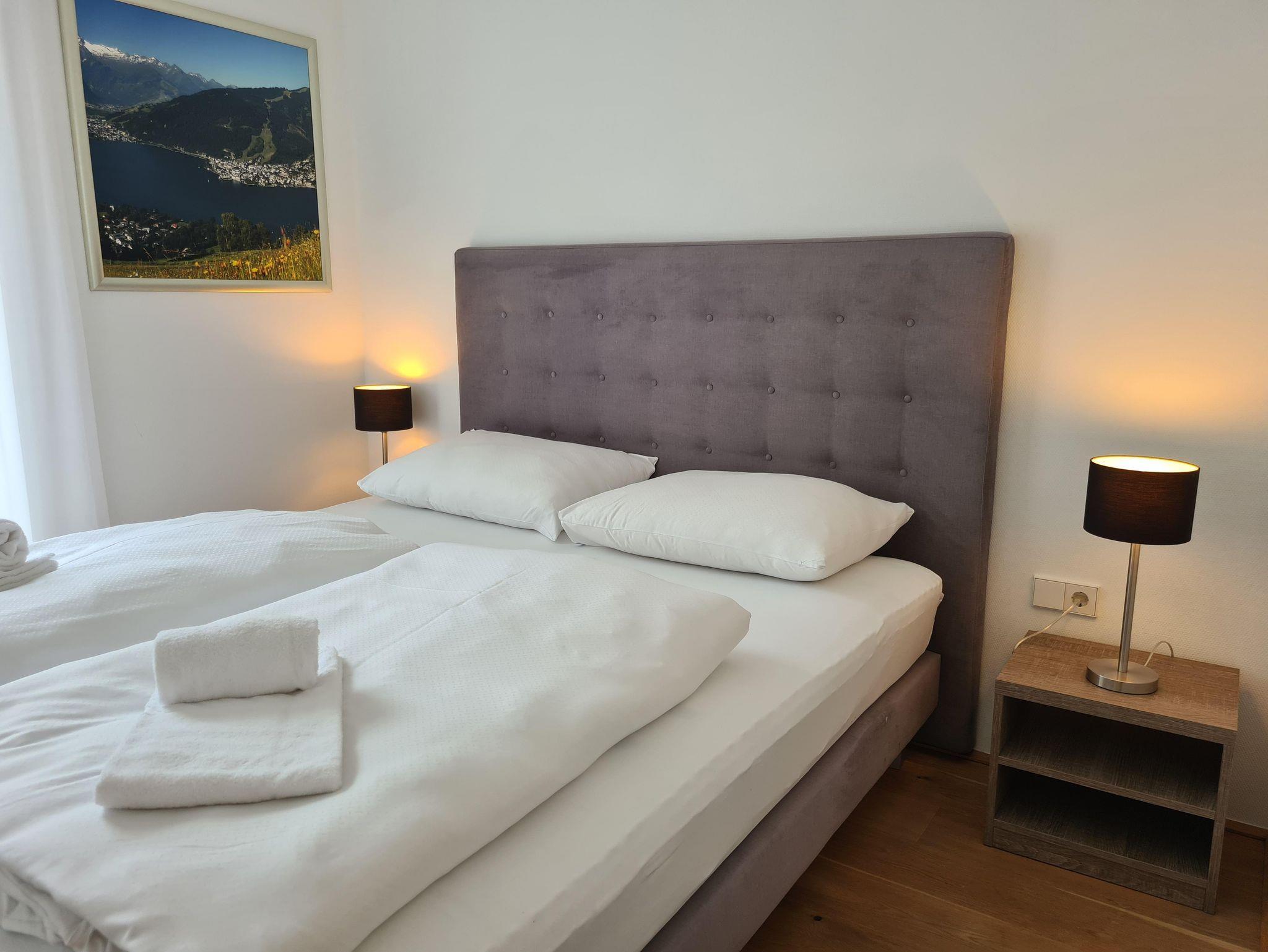 Willkommen im Bellevue Residences Top 4.2 Appartement mit herrlichem Seeblick! Auf 65m² bietet es Platz für bis zu 6 Personen. Es erwarten dich zwei Schlafzimmer mit Doppelbett, welche jeweils über ein eigenes Badezimmer (Badewanne und oder Dusche, WC) verfügen. Das Wohnzimmer bietet eine Doppelschlafcouch (für 2 Kinder oder 1 Erwachsenen) und eine offene Designerküche. Zusätzlich gibt es ein weiteres separates WC. Vom Wohnzimmer aus gelangst du auf den Balkon, von dem aus du einen atemberaubenden Blick auf den Zeller See genießen kannst.