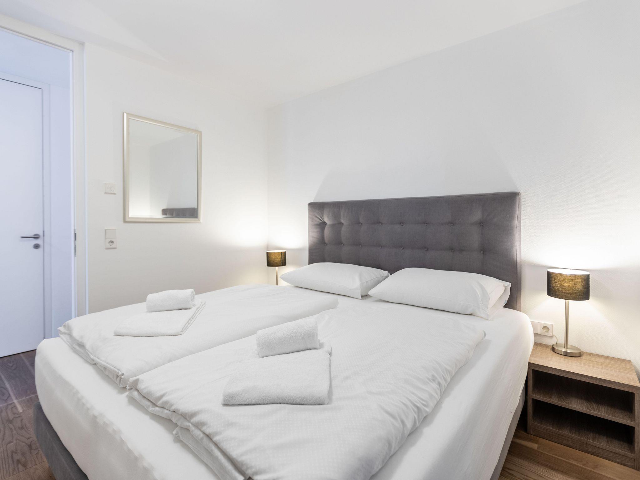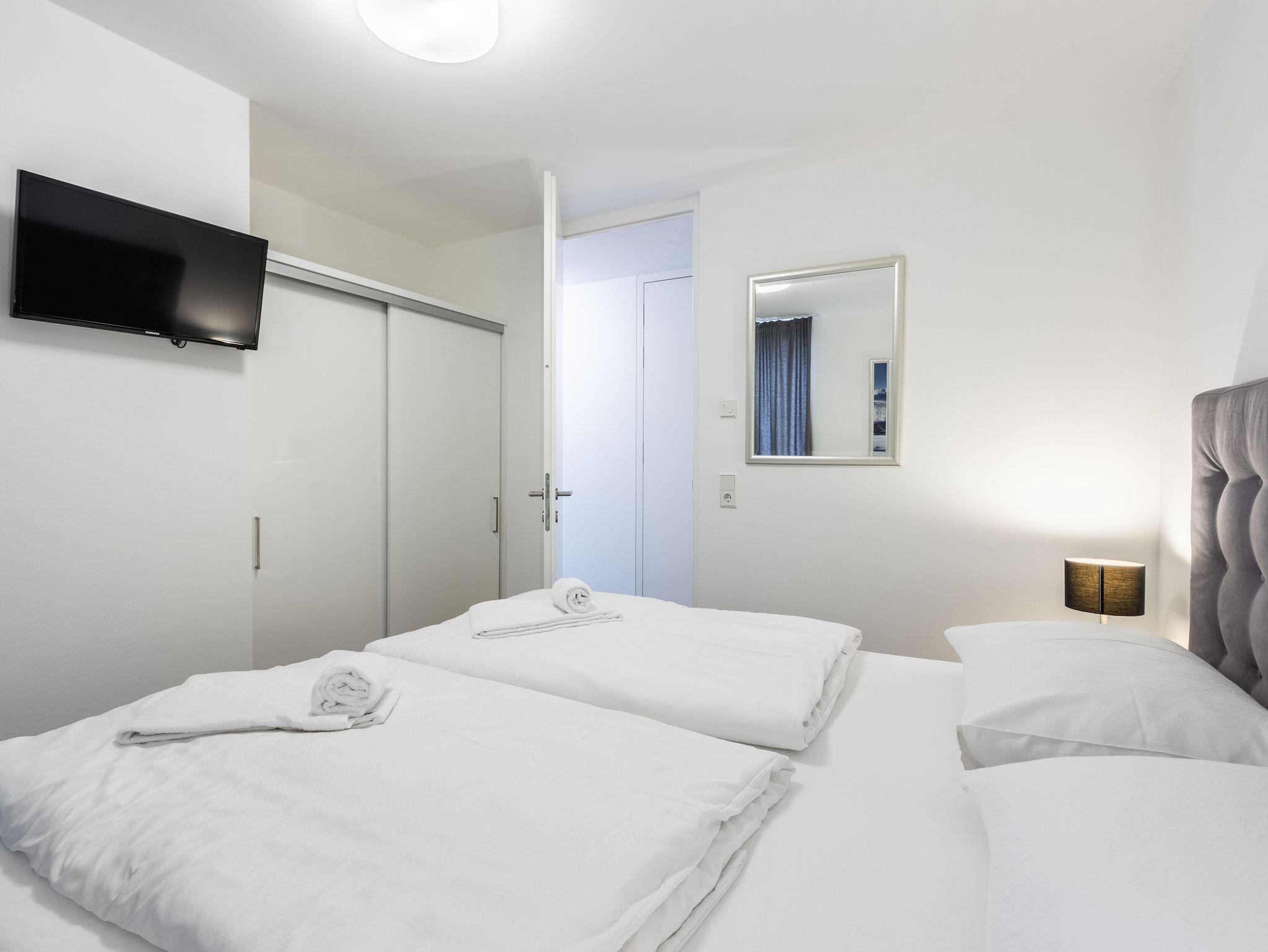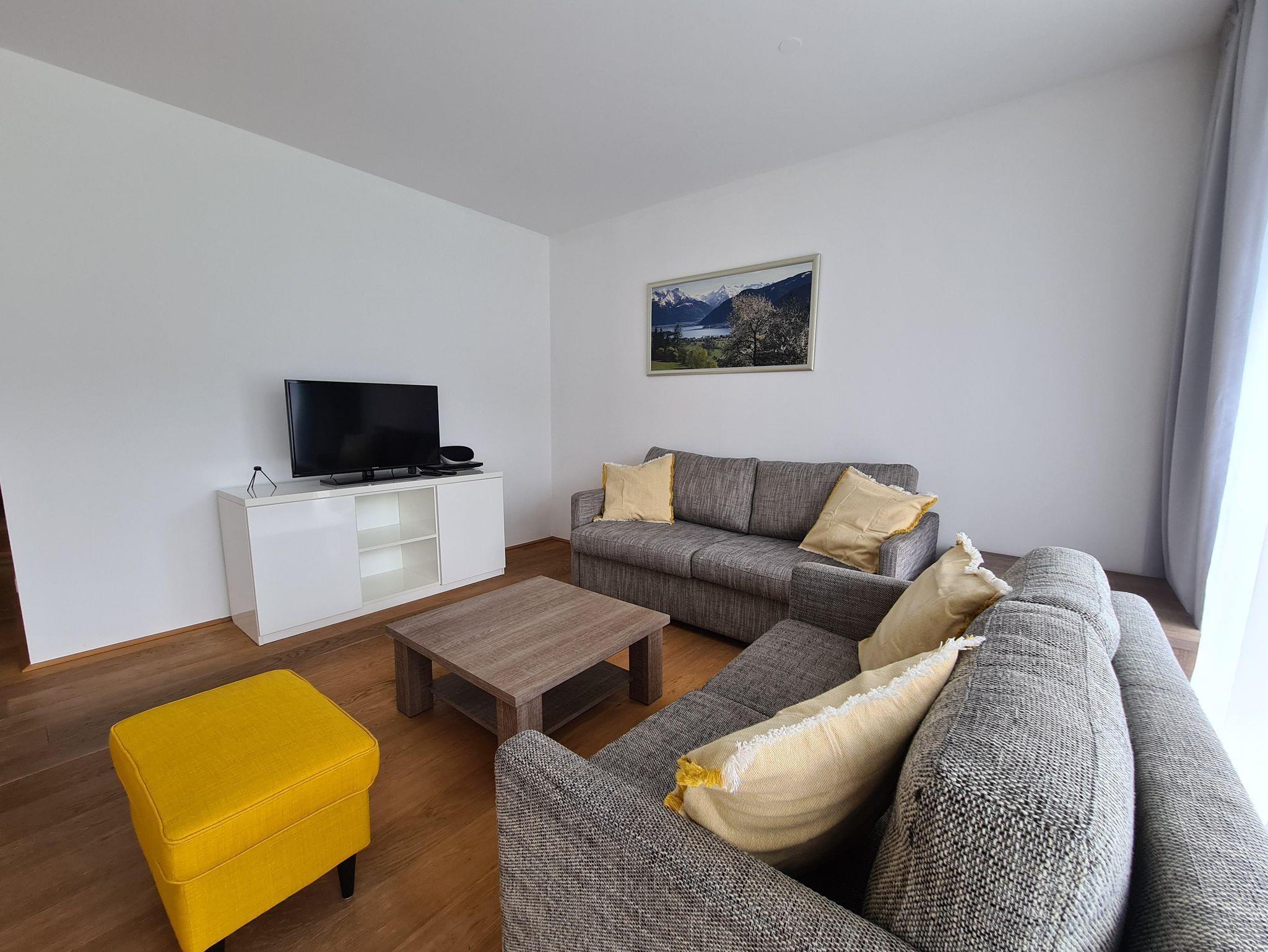 Willkommen im Bellevue Residences Top 4.2 Appartement mit herrlichem Seeblick! Auf 65m² bietet es Platz für bis zu 6 Personen. Es erwarten dich zwei Schlafzimmer mit Doppelbett, welche jeweils über ein eigenes Badezimmer (Badewanne und oder Dusche, WC) verfügen. Das Wohnzimmer bietet eine Doppelschlafcouch (für 2 Kinder oder 1 Erwachsenen) und eine offene Designerküche. Zusätzlich gibt es ein weiteres separates WC. Vom Wohnzimmer aus gelangst du auf den Balkon, von dem aus du einen atemberaubenden Blick auf den Zeller See genießen kannst.