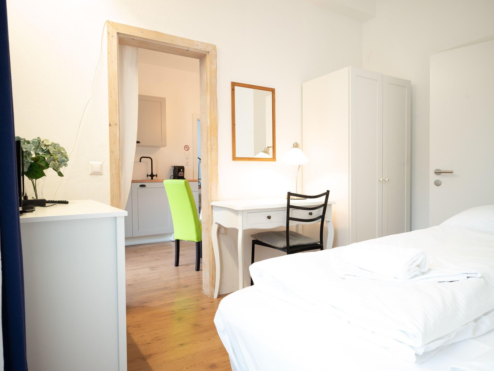 Die Unterkunft verfügt weiter über einen Aufzug, ein Bügeleisen/-brett, Internet (WLAN), einen Föhn, eine Zentralheizung sowie einen Fernseher. Die Küche mit elektrischem Kochfeld ist ebenfalls voll ausgestattet: Dort findet sich ein Kühlschrank, ein Backofen, Geschirr/Besteck, Kochutensilien, eine Kaffeemaschine, ein Toaster und ein Wasserkocher.