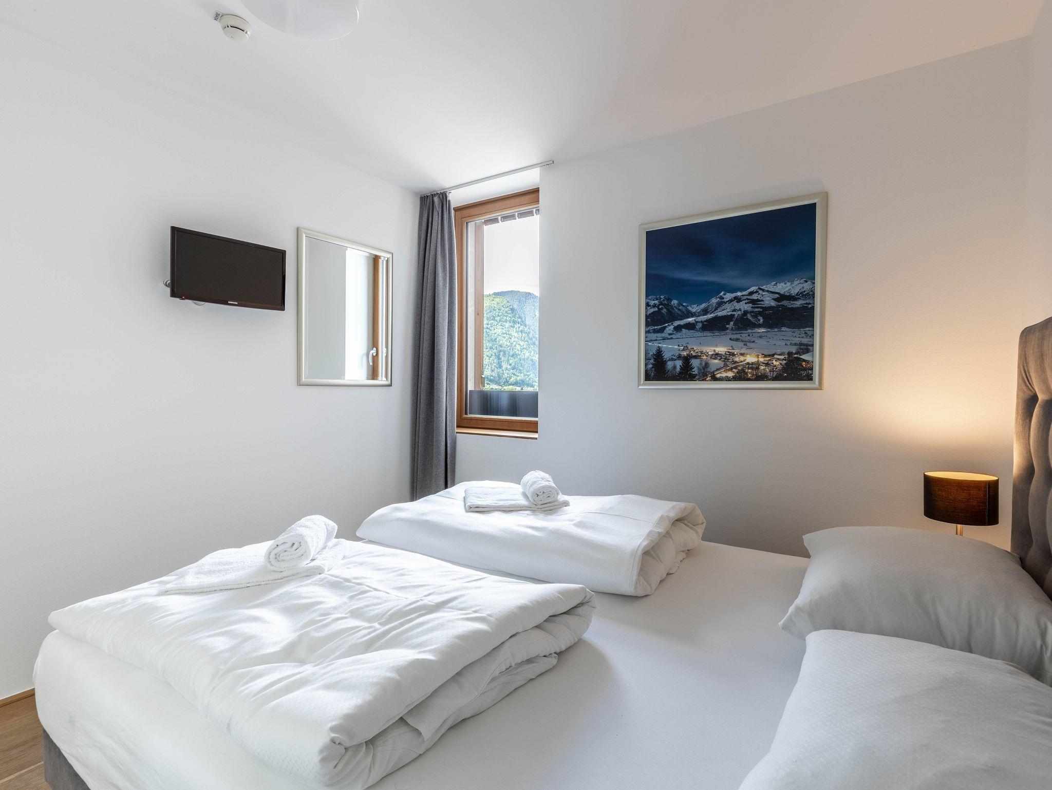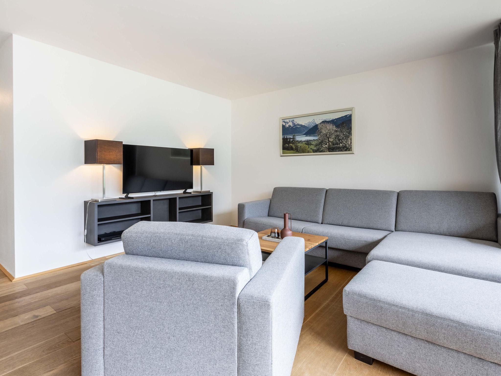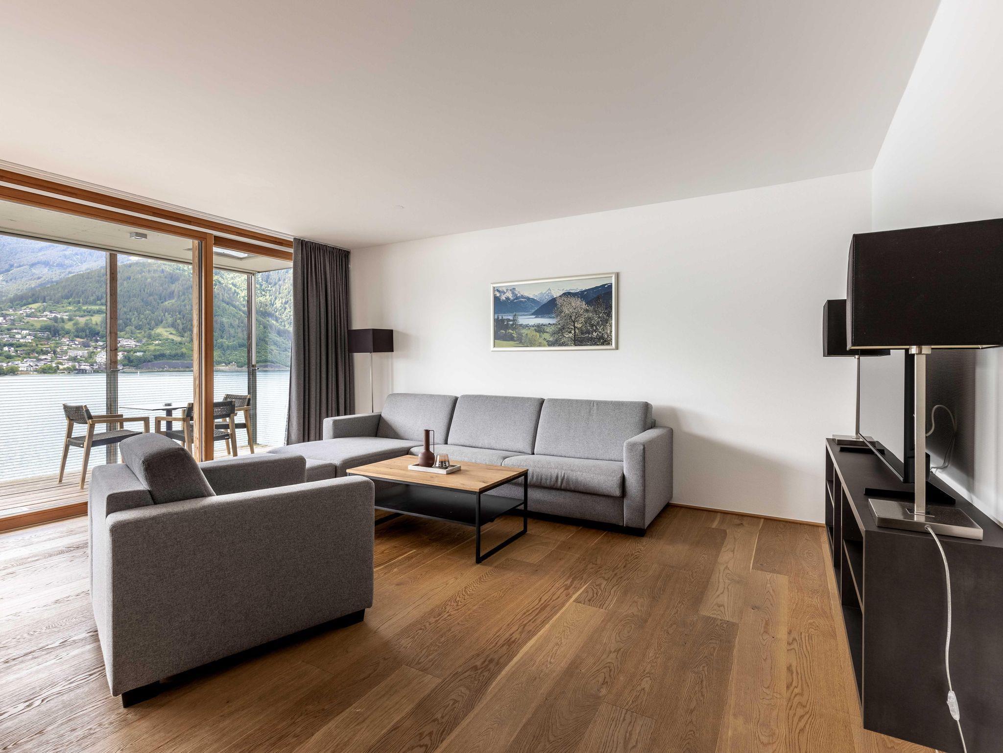 Willkommen im Bellevue Residences Top 5.2 Appartement mit herrlichem Seeblick! Auf 85m² bietet es Platz für bis zu 6 Personen. Es erwarten dich zwei Schlafzimmer mit Doppelbett, ein Wohnzimmer mit Doppelschlafcouch und offener Designerküche, sowie ein Badezimmer mit Badewanne/Dusche und WC. Zusätzlich gibt es ein weiteres separates WC. Vom Wohnzimmer aus gelangst du auf den Balkon, von dem aus du einen atemberaubenden Blick auf den Zeller See genießen kannst.