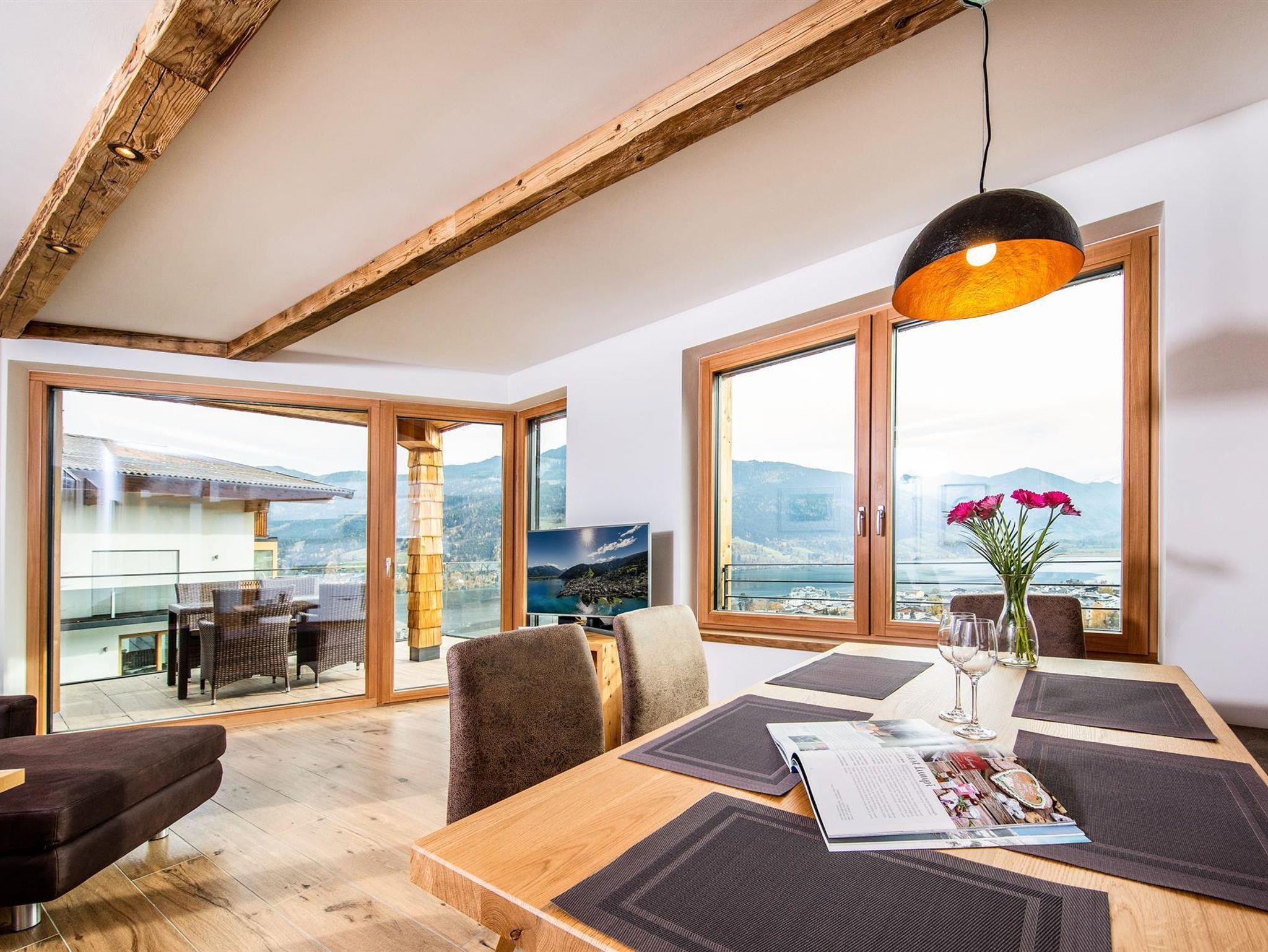 Das Premium Apartmenthaus Adlerhorst über den Dächern von Zell am See. In absoluter Ruhelage am Zeller Sonnberg gelegen gehören die ersten Sonnenstunden des Tages Ihnen. Mit unverbautem Weitblick auf den Zeller See und die umliegende Bergwelt genießen Sie auf Ihrem großzügigen Balkon das traumhafte Panorama.