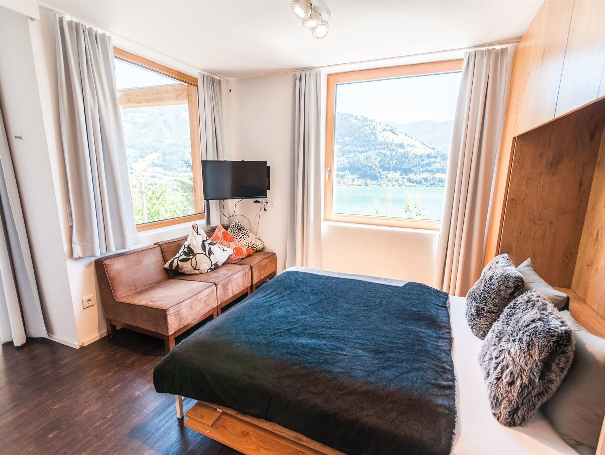 Im Innenbereich befinden sich 4 separate Schlafzimmer und bieten Platz für bis zu 12 Personen, die natürlich im Außenbereich nicht zu kurz kommen! 120m² aufgeteilt auf 2 teilweise beheizte Sonnenterrassen und 2 Balkone lassen Sie das wunderschöne Bergpanorama und den Ausblick auf den Zeller See genießen.