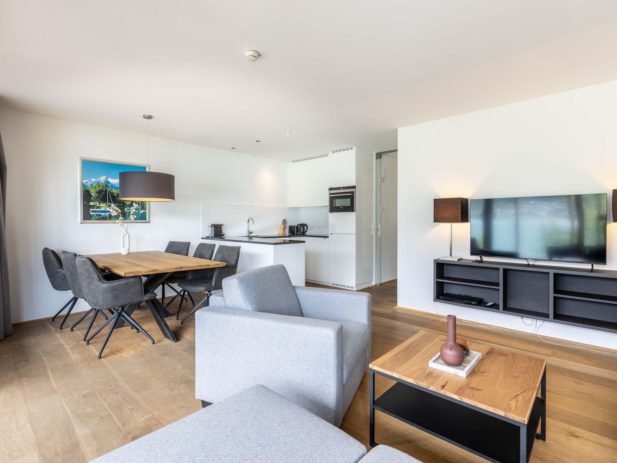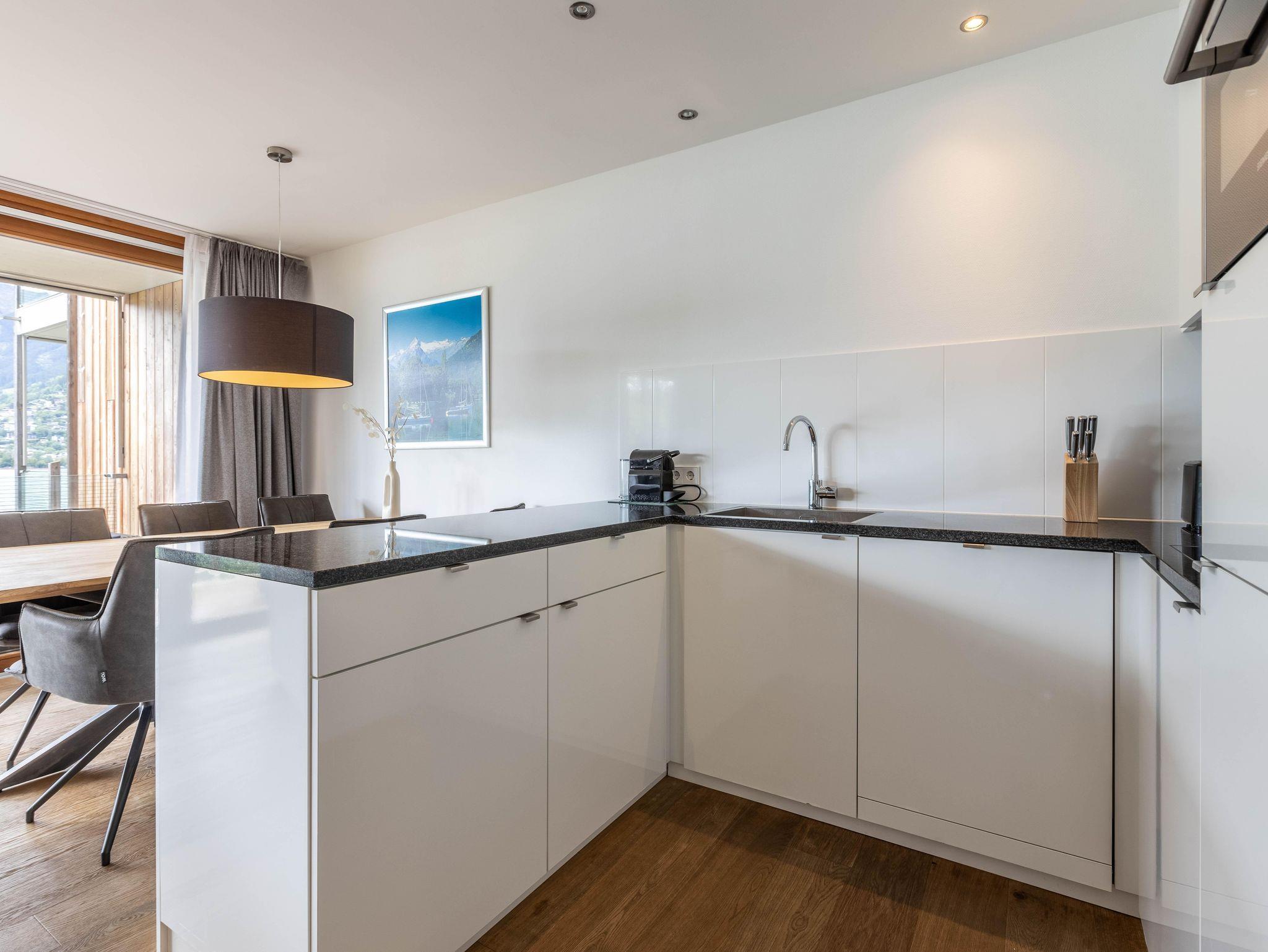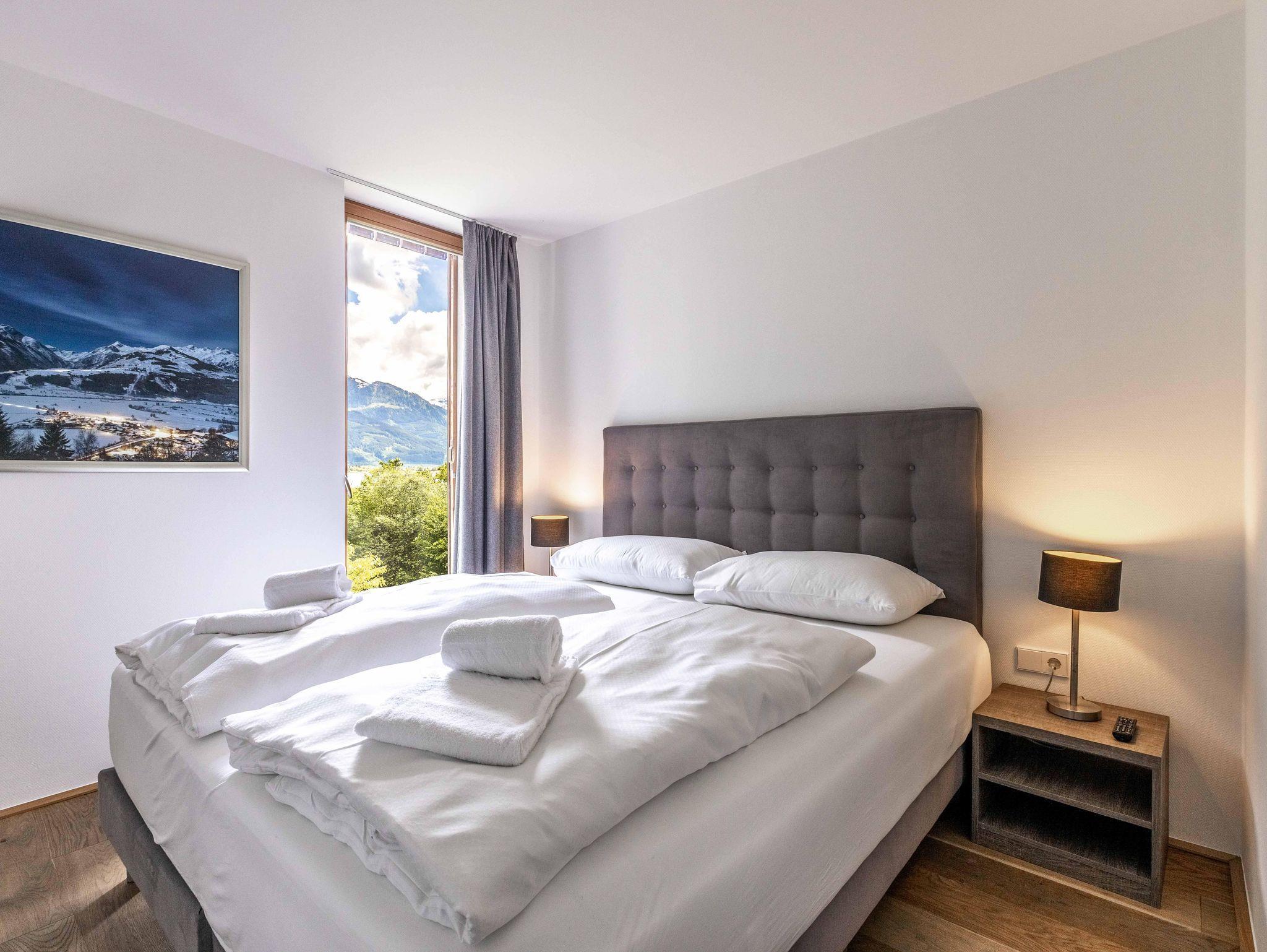 Willkommen im Bellevue Residences Top 3.3 Appartement mit herrlichem Seeblick! Auf 65m² bietet es Platz für bis zu 6 Personen. Es erwarten dich zwei Schlafzimmer mit Doppelbett, ein Wohnzimmer mit Doppelschlafcouch und offener Designerküche, sowie ein Badezimmer mit Badewanne/Dusche und WC. Zusätzlich gibt es ein weiteres separates WC. Vom Wohnzimmer aus gelangst du auf den Balkon, von dem aus du einen atemberaubenden Blick auf den Zeller See genießen kannst.