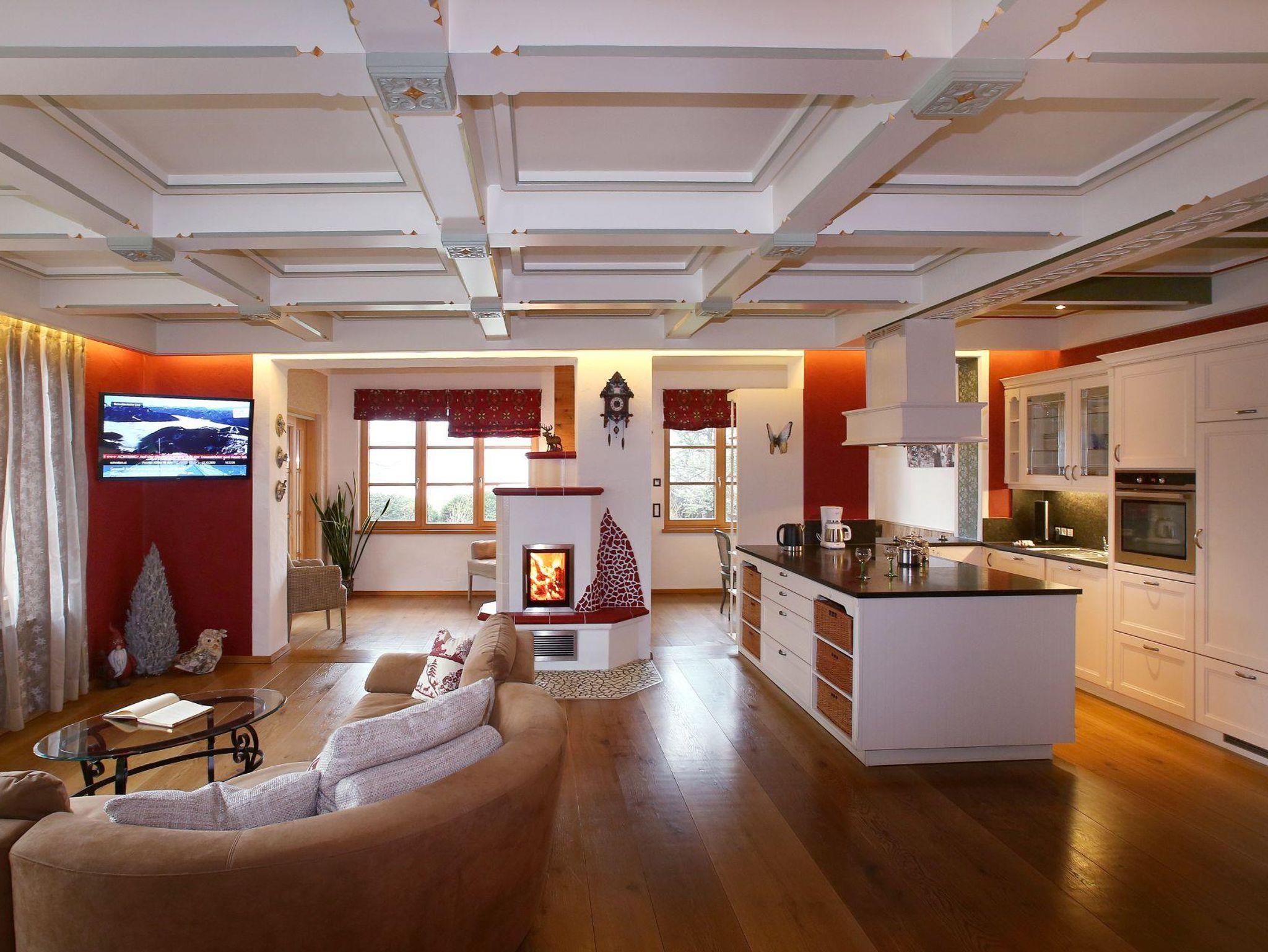 Voll ausgestattet Küche mit Kühlschrank und Gefrierfach, Geschirrspüler, Wasserkocher, Filterkaffeemaschine, Ceranfeld, Backofen, Mikrowelle, Waschmaschine, großer Wohn – Essbereich mit Kachelofen, 2 Schlafzimmer mit Doppelbett und je einem Stockbett mit einem Bad mit Dusche und WC ( in einem Bad ist eine Badewanne) Fön in jedem Bad, 1 extra WC im Gang, eigener Skiraum bzw. Fahrradraum, große Garderobe, überdachte Terrasse mit privatem Gartenbereich. Bett – Tisch und Handtücher sind im Preis inbegriffen