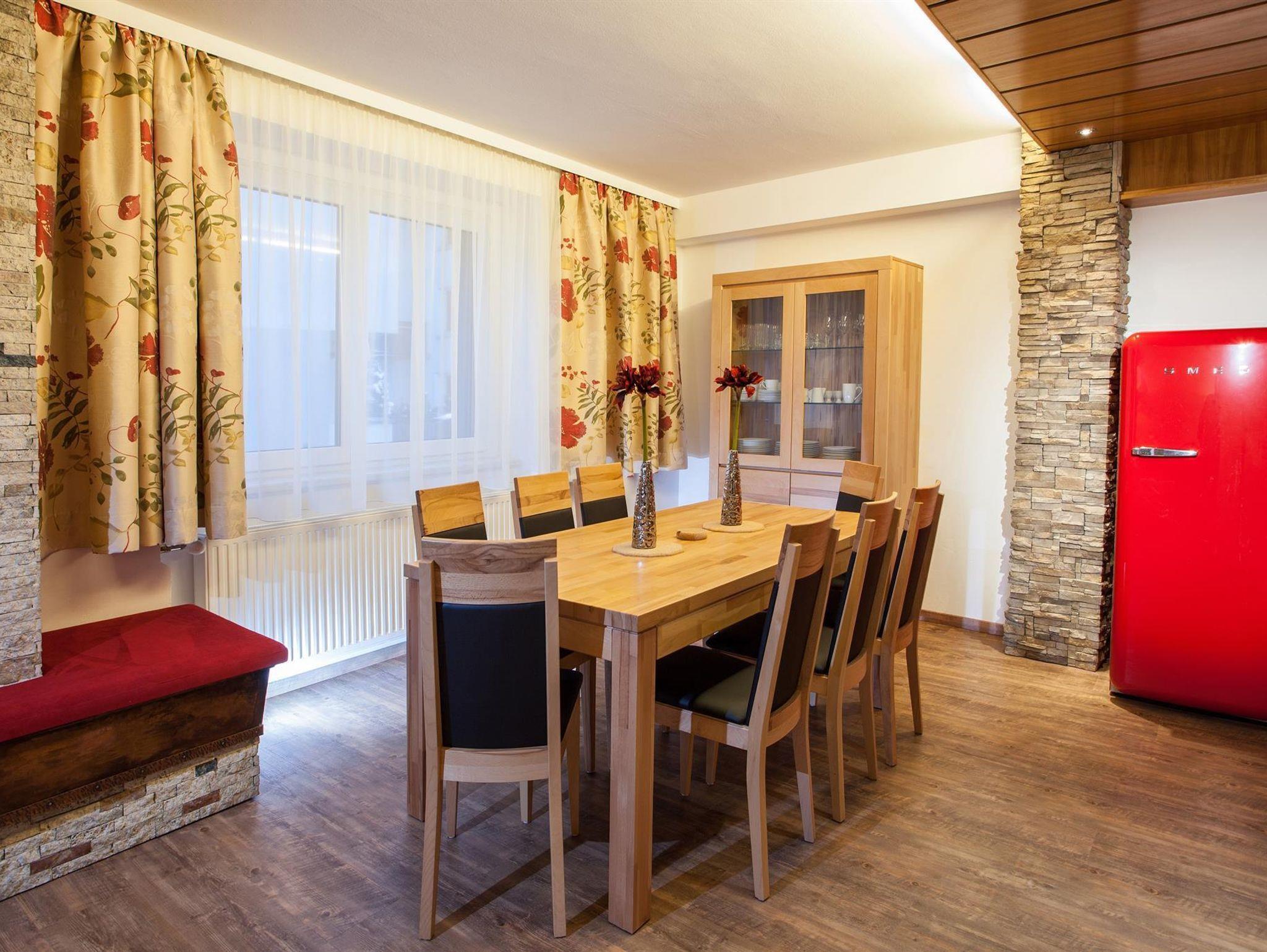 110 m² Wohnfläche für 6-8 Personen Dieses Apartment besteht aus zwei geräumigen Schlafzimmern mit Doppelbetten, einem Schlafzimmer mit 2 Einzelbetten, einem geräumigen Wohn/Schlafraum mit Doppelausziehcouch und einem Essraum mit voll ausgestatteter Küche mit Vierplattenherd u. Backrohr, Cremesso-Kaffeekapselautomat, Wasserkocher, Geschirrspüler, Kühlschrank mit Gefrierfach.