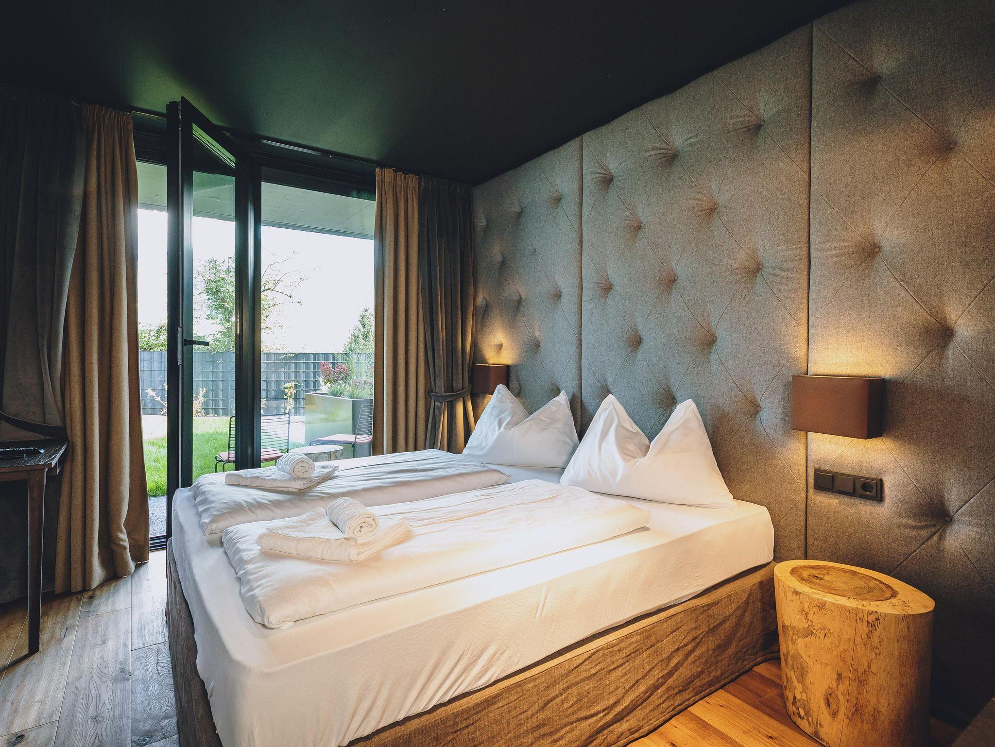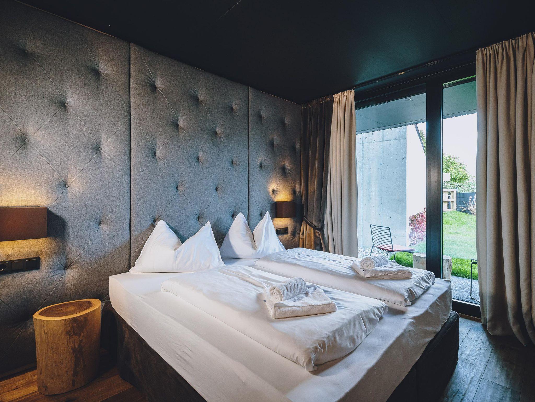 Aufgeteilt auf 2 Ebenen bietet die Ferienwohnung 2 separate Schlafzimmer mit jeweils einem Bad en suite wovon 1 Badezimmer eine private Sauna bietet. Beide Schlafzimmer sind ausgestattet mit einem Smart-TV und einer Kommode. Von beiden Schlafzimmern gelangt man direkt in den Garten und kann den Frühstückscafe im Grünen genießen.