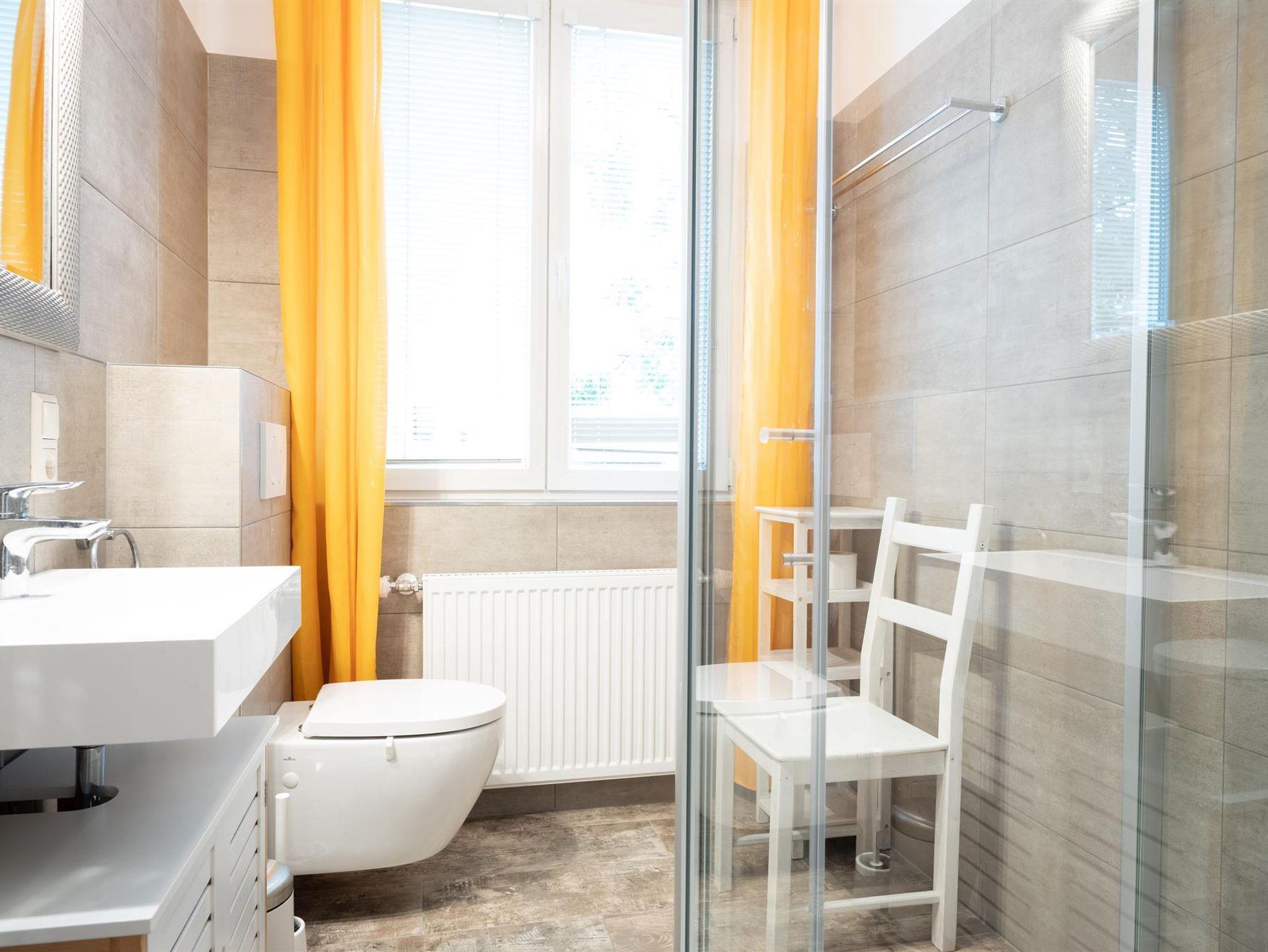 Die Unterkunft verfügt weiter über einen Aufzug, ein Bügeleisen/-brett, einen Internetanschluss (WLAN), einen Föhn, eine Zentralheizung sowie einen Ventilator und einen Fernseher. Die Küche mit elektrischem Kochfeld ist ebenfalls voll ausgestattet: Dort findet sich ein Kühlschrank, ein Backofen, Geschirr/Besteck, Kochutensilien, eine Kaffeemaschine, ein Toaster und ein Wasserkocher.