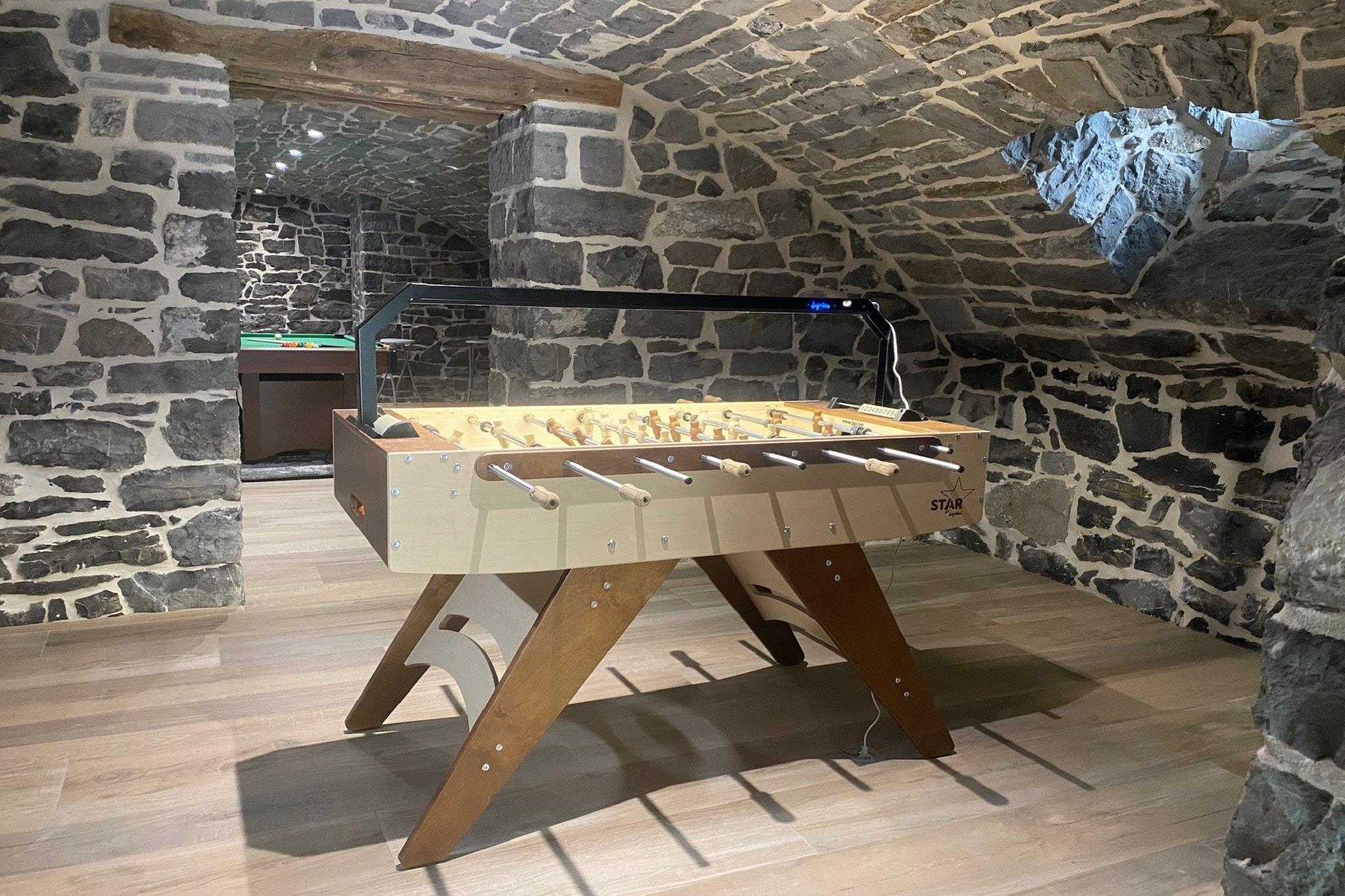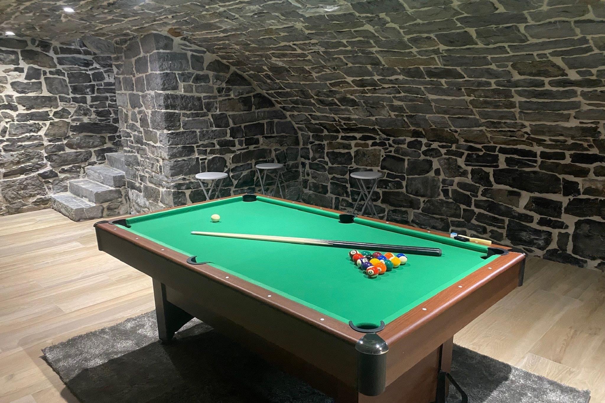 Detta nyligen renoverade semesterhus i Achet erbjuder ett varmt, funktionellt utrymme för upp till 9 gäster fördelat på 4 sovrum, vilket gör det idealiskt för familjer eller grupper. Med en inhägnad trädgård, terrass och grill, är det perfekt för avkoppling utomhus och gemensamma måltider under stjärnorna. Floden Bocq, bara 100 meter bort, lägger till en lugn bakgrund för morgonpromenader eller kvällspromenader. Inuti hittar du ett rymligt vardagsrum med en vedeldad spis, ett modernt öppet kök och ett spelrum med glasgolv, en smart design som låter föräldrar hålla ett öga på barnen. En hängmatta inbjuder till lata eftermiddagar, medan boulebanan och studsmattan lovar kul för alla åldrar. Terrassen med trädgårdsmöbler är perfekt för att njuta av solen eller njuta av en lugn kväll. I närheten kan du utforska Dinant-citadellet och Vêves-slottet, båda under en timmes bilresa, eller ge dig ut i regionens grottor för att få en inblick i Belgiens naturliga underverk. För att äta middag kan du njuta av italienska smaker på Les délices d'Italie - Cantina italiana, asiatisk fusion på Le Bonheur eller lokal belgisk mat på La Brasserie Du Five Nations. Detta hem är en härlig bas för både äventyr och avkoppling.