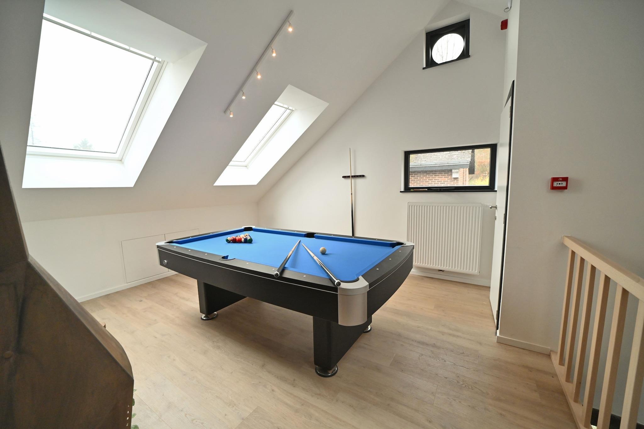 Denna unika vattenkvarn är omsorgsfullt renoverad och utrustad med wellness och ett underbart läge. Den har en hisnande utsikt över den stora trädgården, längs bäcken l'Eau d'Heure, och den är mycket lämplig för en familjeåterförening. Vattenkvarnen i Baillonville ligger bara 10 minuters bilresa från medeltida Durbuy, i en miljö som är utmärkt för promenader turer. Bäcken "l'Eau d'Heure" rinner ut i Ourthe några kilometer längre. Med ett mycket rymligt kök med matbord, en uppvärmd inomhuspool, en bastu och regnduschar, kombinerar detta semesterhus äktheten av en vattenkvarn med modern komfort. Det finns ett rekreationsrum med biljard och bordsfotboll och du kan koppla av på kvällarna framför platt-TV:n. Alla sovrum har eget badrum, med undantag för de 2 sovrummen för barn. Drycker, mat och bollspel är inte tillåtet i poolen och lugnet måste alltid respekteras.