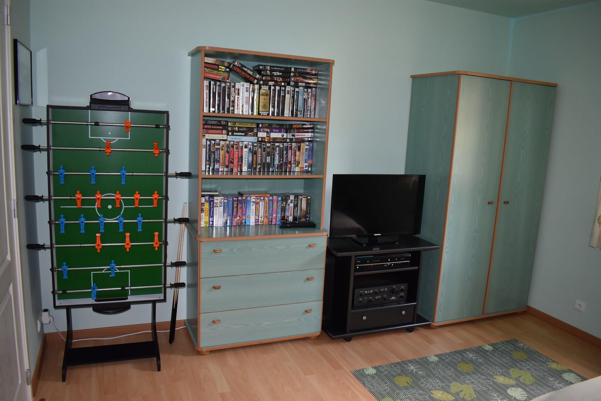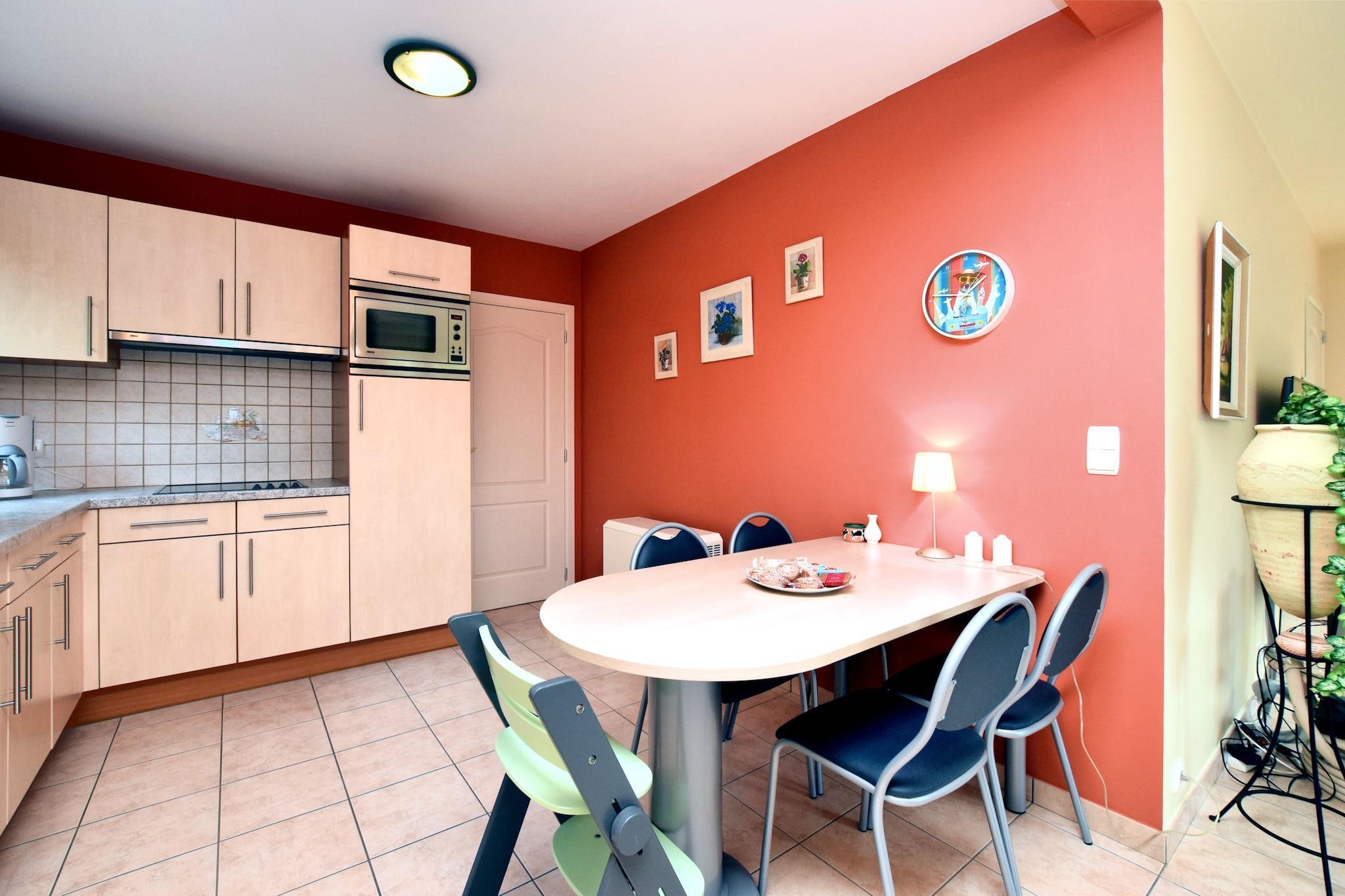 Upptäck komfort och avkoppling i detta charmiga semesterhus med 4 sovrum i Barvaux sur Ourthe, nära Durbuy, inbäddat bara 100 meter från skogen. Perfekt för familjer eller grupper på upp till 8 gäster, denna rymliga tillflyktsort har en infraröd bastu, perfekt för att varva ner efter utomhusäventyr. Det öppna köket är fullt utrustat med moderna apparater, inklusive en diskmaskin, mikrovågsugn och kaffebryggare, redo för att laga mat att njuta av inomhus eller på den överbyggda terrassen med en grill. Vardagsrummet/matsalen har en platt-TV, DVD-spelare och stereo för underhållning. Bottenvåningen innehåller ett mysigt sovrum med dubbelsäng och eget badrum, medan på övervåningen hittar du ytterligare tre sovrum och ett familjebadrum med badkar och bastu. Unga gäster kommer att älska sandlådan, rutschkanan och lekredskapen i trädgården. Barnsängar och barnstolar finns tillgängliga på begäran. Lokala bekvämligheter inklusive livsmedelsbutiken, centrum och Ourthe River ligger bara några kilometer bort, vilket gör detta till en idealisk bas för att utforska de vackra belgiska Ardennerna.