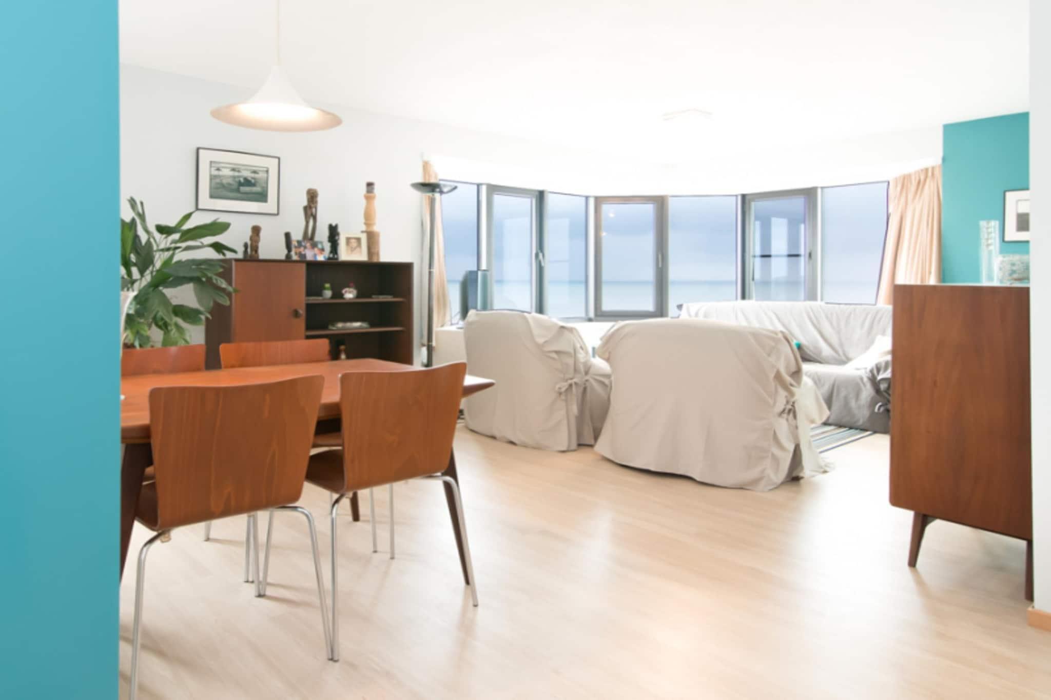 Denna fräscha och mysiga lägenhet med 1 sovrum på 7:e våningen erbjuder fantastisk sidoutsikt över havet, belägen på den pittoreska Zeedijk i Raversijde. Det rymliga vardagsrummet har en bekväm bäddsoffa och en väggsäng, vilket gör det perfekt för upp till fyra gäster. Med ett överflöd av naturligt ljus erbjuder lägenheten en avslappnad och luftig atmosfär, kompletterad med ett söderläge som garanterar mycket sol på eftermiddagen. Sovrummet erbjuder vacker havsutsikt, och lägenheten ligger bara några steg från stranden, med en spårvagnshållplats runt hörnet. Lägenheten är designad för komfort, med ett välutrustat öppet kök med mikrovågsugn, vattenkokare, brödrost, mixer, kyl med frys och en traditionell kaffebryggare. Badrummet har en duschkabin, medan vardagsrummet har moderna bekvämligheter som digital-TV, Wi-Fi och ett musiksystem för underhållning. En rymlig garagebox med parkering för två bilar ingår, vilket ger extra bekvämlighet. Byggnaden är rullstolsanpassad och lägenheten är husdjursvänlig, vilket gör den idealisk för dem som reser med små husdjur. Med sitt utmärkta läge nära stranden, en mängd lokala butiker och enkel tillgång till kollektivtrafik, är denna lägenhet perfekt för alla som vill uppleva Ostendes skönhet. Oavsett om du kopplar av i det mysiga vardagsrummet, njuter av havsbrisen från sovrummet eller utforskar närliggande attraktioner, är denna lägenhet en utmärkt bas för en minnesvärd semester vid havet.