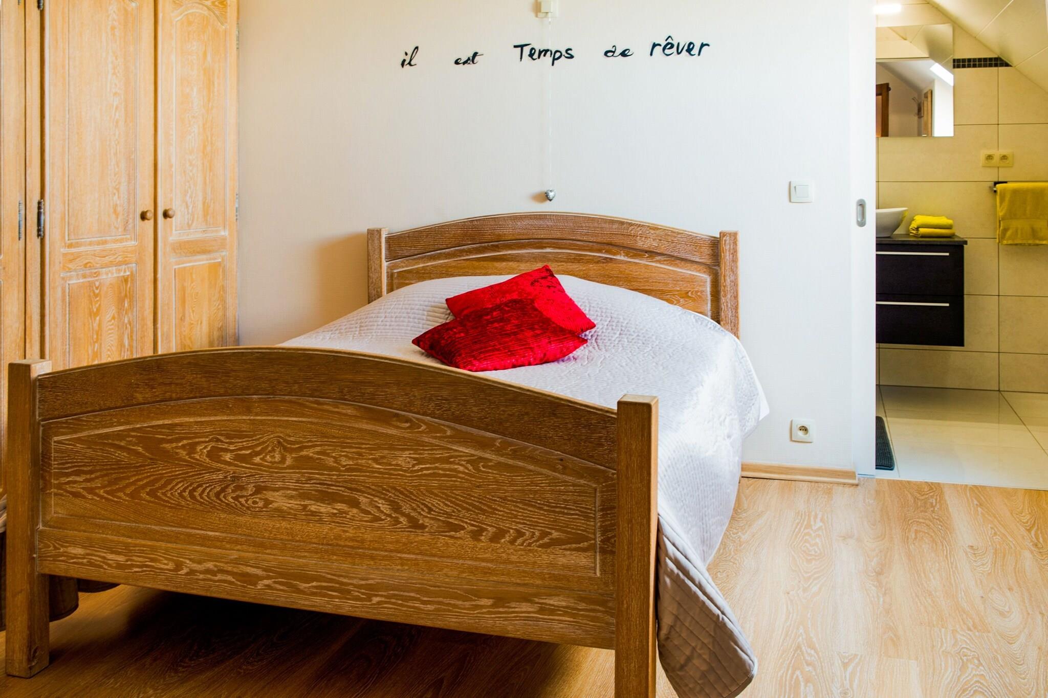 Undangömd på en lugn återvändsgränd i den fridfulla byn Vresse-sur-Semois, är denna moderna villa med 4 sovrum en perfekt tillflyktsort på landsbygden för familjer eller grupper av vänner. Varje sovrum har sitt eget badrum, vilket garanterar avskildhet och komfort för alla gäster. Omgivet av hisnande vyer och fridfull natur, utlovar detta hem en verkligt avkopplande vistelse i hjärtat av de belgiska Ardennerna. Friluftsälskare kommer att hitta mycket att njuta av i närheten, utforska skogarna, upptäcka det lokala djurlivet eller kajak på Semoisfloden bara en kort bilresa bort. På vintern är det möjligt att åka längdskidor i Conrad. Om du vill äta och shoppa kan du besöka de närliggande centrumen Alle-sur-Semois (6 km) och Bievre, där du hittar lokala restauranger, butiker och terrasser. Tillbaka till villan, varva ner vid den öppna spisen eller njut av en omgång bordtennis eller PlayStation. Hästägare är välkomna att låta sina hästar beta på ängen. Cykelförvaring finns också. Sängkläder, handdukar och kökstextilier kan tillhandahållas på begäran, kontakta bara ägaren minst en vecka före ankomst. Husdjur är också välkomna, vilket gör denna villa till en komplett, naturfylld tillflyktsort.