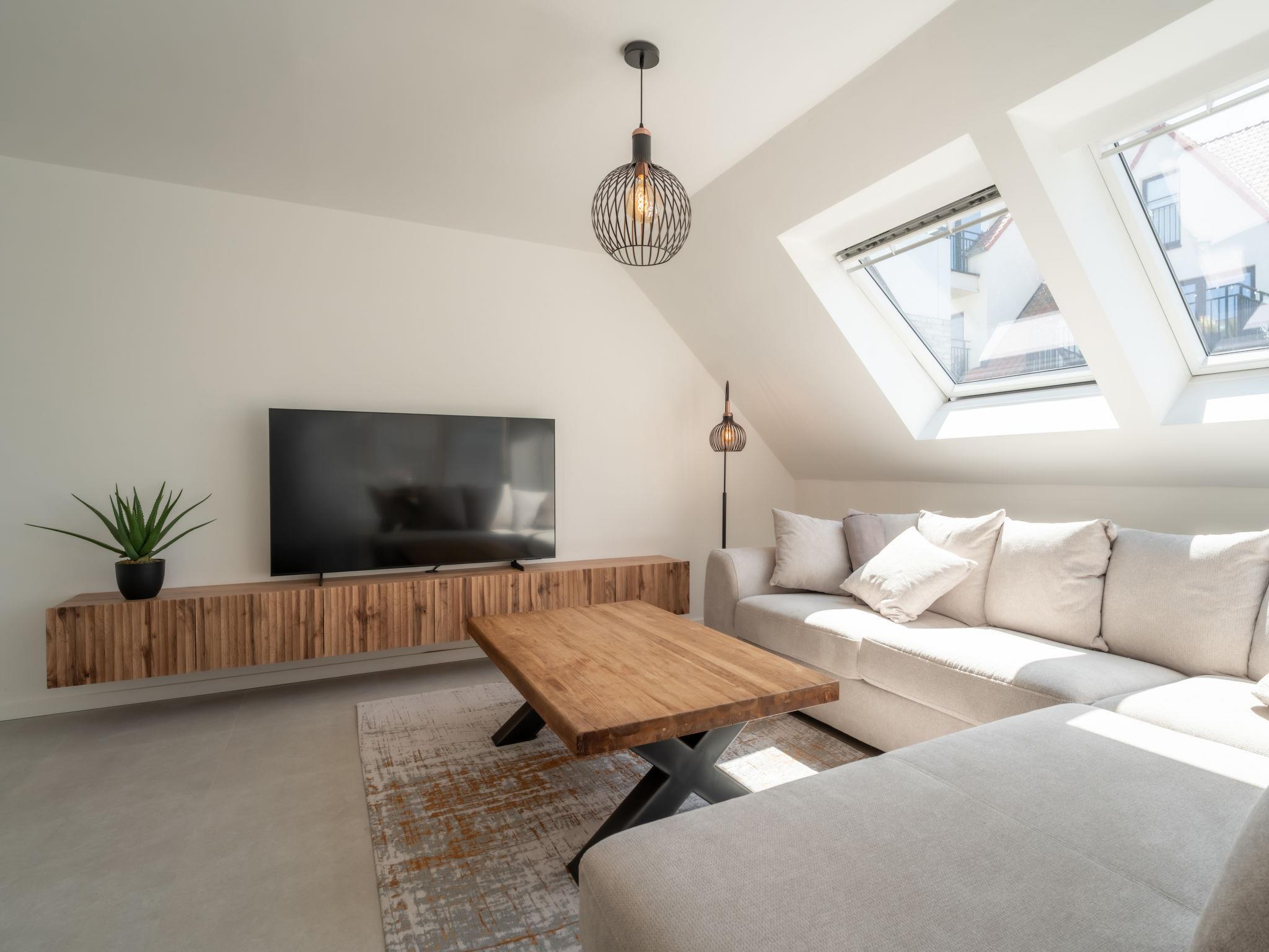 "Seabird I with terrace", 3-room apartment 142 m2 on 3rd floor. Bright, comfortable and cosy furnishings: entrance hall. Living/dining room with digital TV and international TV channels. Exit to the terrace. 1 double bedroom with 1 double bed (180 cm, length 200 cm), shower/WC and double hand-basin. Open kitchen (oven, 4 induction hot plates, microwave, electric coffee machine) with dining table. Sep. WC. Upper floor: 1 double bedroom with 1 double bed (180 cm, length 200 cm), shower. Heating. Large terrace. View of the city. Facilities: Internet (WiFi, free). Garage (extra) (1 car). Please note: non-smokers only. Smoke alarm, fire extinguisher.