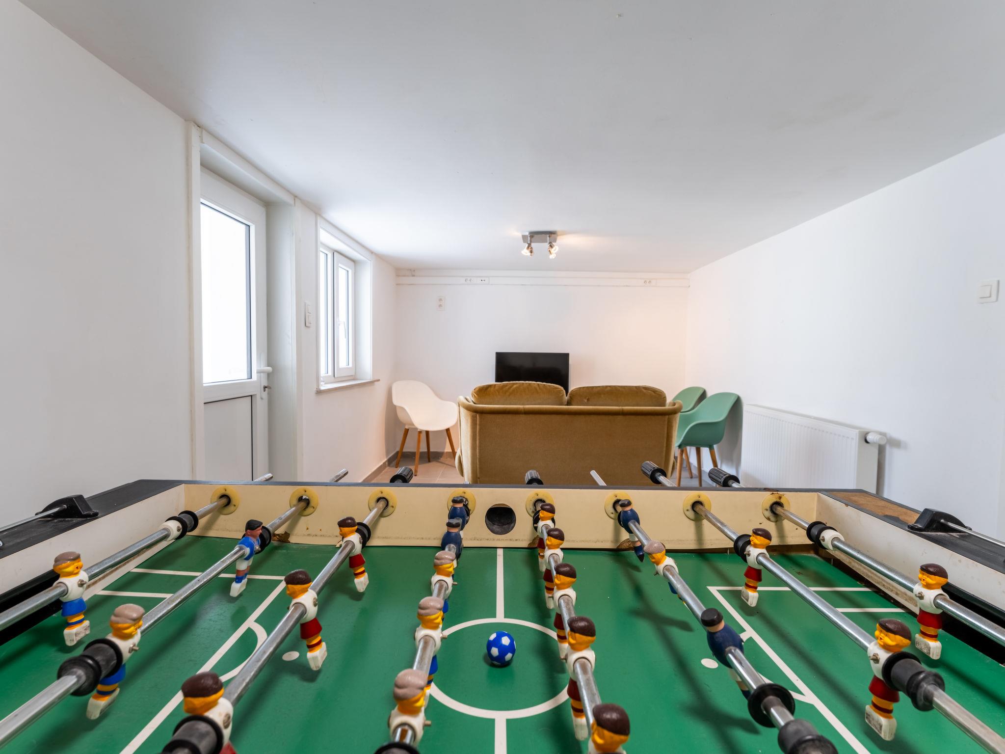 "Wanderlust Belgium with parking", 6-room house 200 m2. Bright, comfortable and cosy furnishings: entrance hall with separate WC. Living room with TV. Large dining room. Large kitchen (oven, dishwasher, 4 induction hot plates, toaster, kettle, microwave, freezer, electric coffee machine) with small dining table. On the lower ground floor: (steep stair) playroom with TV. Upper floor: with 1 double bed (1 x 160 cm, length 200 cm) with 1 double bed (160 cm, length 200 cm) with 1 double bed (160 cm, length 200 cm). 1 bunk beds (90 cm, length 200 cm) with 1 double bed (160 cm, length 200 cm). 2 showers, sep. WC, double hand-basin. Facilities: washing machine, dryer, children's high chair, hair dryer. Internet (WiFi, free). Parking (roofed), garage (2 cars). Please note: suitable for families. Non-smoking house, parking space for small car only. Smoke alarm, fire extinguisher, no lift. LD389215