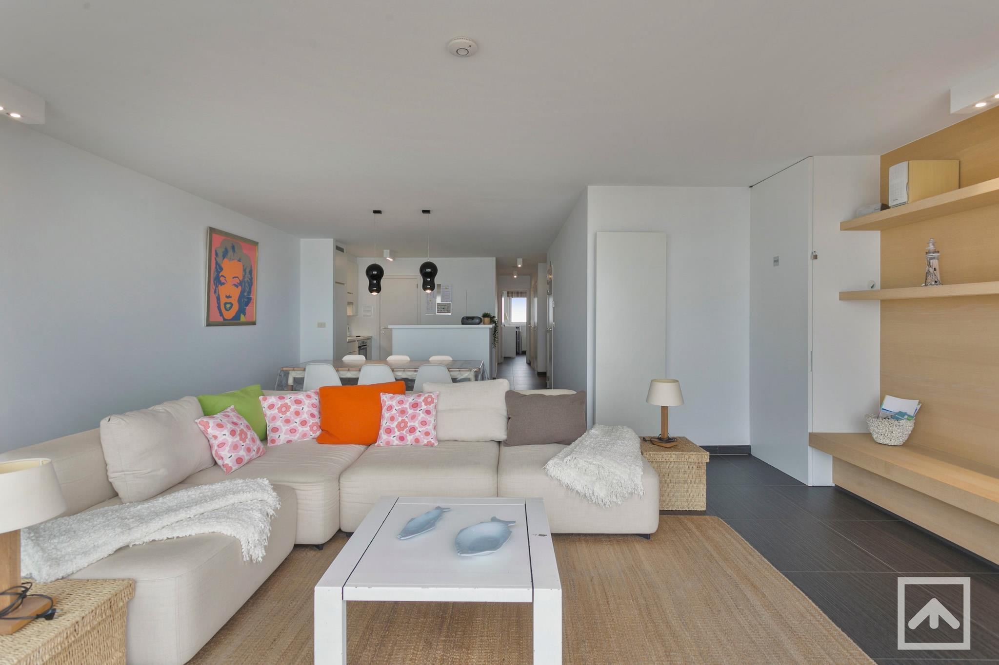 Denna moderna, nybyggda lägenhet i Blankenberg erbjuder fantastisk havsutsikt, vilket gör den till den perfekta platsen för en avkopplande och elegant semester. Med moderna möbler och en inbjudande atmosfär erbjuder lägenheten en bekväm och elegant miljö där gästerna kan varva ner. Dess centrala läge gör att du har nära till alla spännande aktiviteter och attraktioner som denna livliga kuststad har att erbjuda. Du kommer att befinna dig bara några steg från stranden, där du kan njuta av solen och surfa, samt närliggande strandpromenader perfekta för sköna promenader. För dig som söker äventyr finns det vattensporter, cykeluthyrning och livliga kaféer och restauranger. Stadens centrum, med sina butiker och lokala marknader, ligger också en kort promenad bort, och erbjuder en chans att utforska den charmiga lokala kulturen. Närliggande attraktioner inkluderar Blankenbergs strandpromenad, perfekt för avkopplande promenader eller cykling, och den historiska gamla stadsdelen med sina pittoreska gator och kaféer. Oavsett om du vill koppla av vid havet eller njuta av den livliga lokala scenen, är denna lägenhet en perfekt bas för en minnesvärd semester. Rekommenderas varmt för dig som söker både nöje och avkoppling!