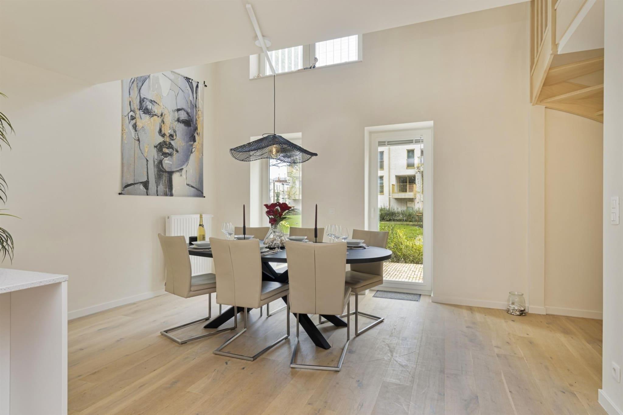 Detta nybyggda semesterhus erbjuder en fridfull och lyxig tillflyktsort, perfekt för en avkopplande semester. Inbäddat i en lugn grön miljö ger det en flykt från liv och rörelse samtidigt som det är nära till lokala attraktioner. Huset har tre rymliga sovrum, vilket gör det idealiskt för familjer eller grupper. Bottenvåningen har en matplats i öppen planlösning och ett fullt utrustat kök, medan andra våningen har ett mysigt vardagsrum och ett sovrum. Den översta våningen har ytterligare två sovrum och ett separat badrum, vilket garanterar komfort och avskildhet för alla gäster. Ett privat garage ingår också för extra bekvämlighet. Blankenberge erbjuder en perfekt blandning av historia, kultur och rekreation. På Belle Epoque Centrum kan du lära dig om stadens framväxt som en chic badort genom utställningar om arkitektur, mode och konst. Utforska det historiska huset Majutte, det äldsta fiskarhuset på den belgiska kusten, eller besök SEA LIFE för att se över 2 500 marina varelser. Njut av fantastisk utsikt från Belgiens pir eller Oosterstaketsel, perfekt för fotografering och fiske. Hamnfestivalen och Paravang-festerna hyllar maritima traditioner och Belle Epoque-arv. För avkoppling kan du besöka Riant d'Eau Wellness eller Bloso Blankenberges bastuanläggning. Vattensportälskare kan bege sig till O'Neil Beachclub, medan sportentusiaster kan njuta av tennis, padel eller petanque på Tennis Club. Missa inte en rolig kväll på Bowl Inn! Det fullt utrustade köket har ugn, mikrovågsugn, diskmaskin och kaffebryggare för enkel matlagning. En rymlig terrass är en perfekt plats för att äta utomhus eller koppla av i den friska luften. Med sitt utmärkta läge och genomtänkta bekvämligheter är detta hem ett utmärkt val för en oförglömlig kustnära flykt.