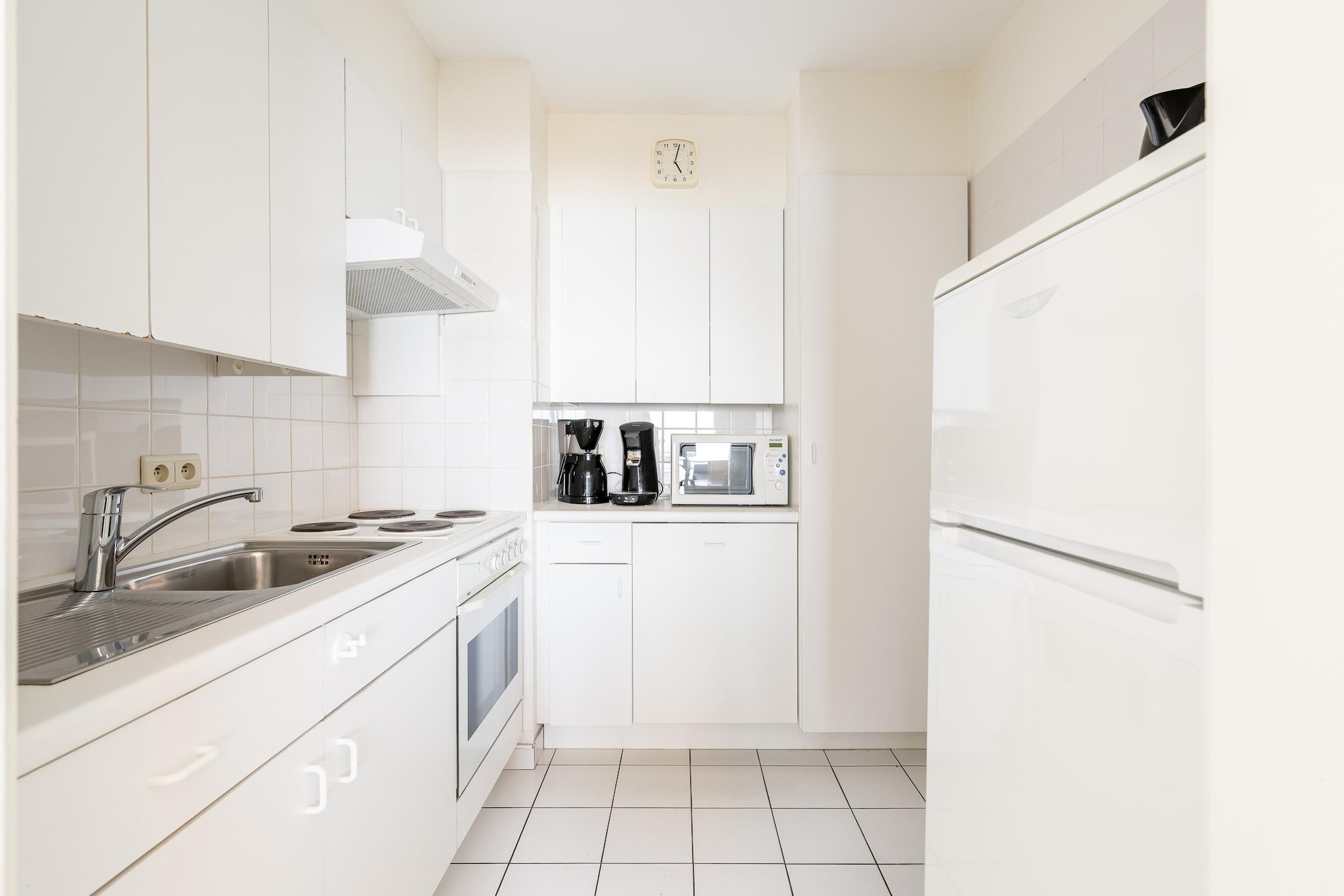 På 9: e vån.: (Kök(Kokplattor(elektrisk), vattenkokare, brödrost, kaffebryggare(kaffetratt, kaffekapslar), ugn, mikrovågsugn, diskmaskin, kyl och frys, Mixer, ), ardags- och matrum(bäddsoffa, TV(platt-tv, digital, Inga tyska TV-kanaler), matbord, DVD-spelare, radio, CD-spelare), sovrum(dubbelsäng(dubbeltäcke, 160 x 200 cm)), badrum(badkar med dusch, handfat, handfat), WC(toalett ), Tillgång till Internet) balkong, uteplats, terrass, hiss, Sea view