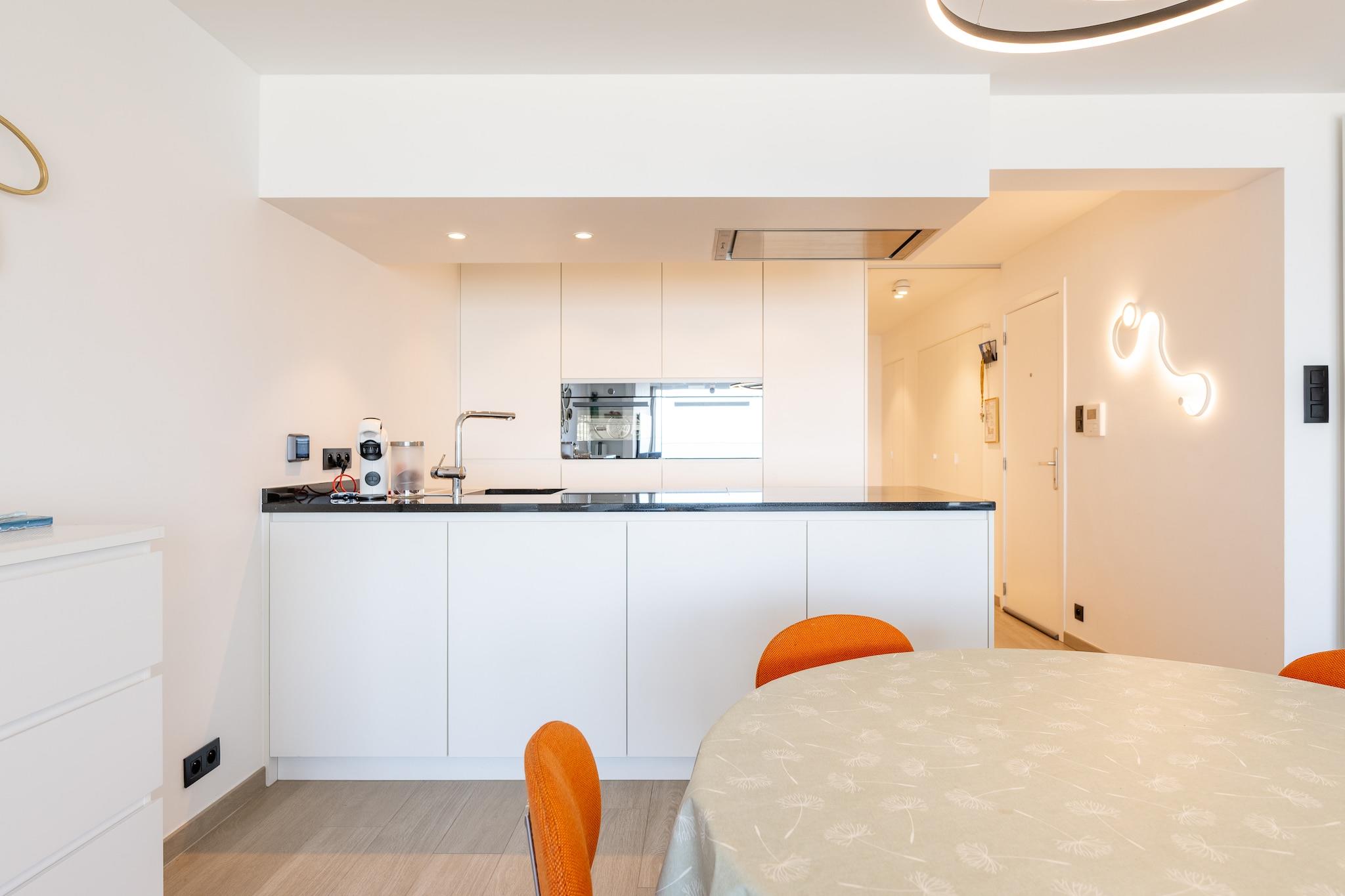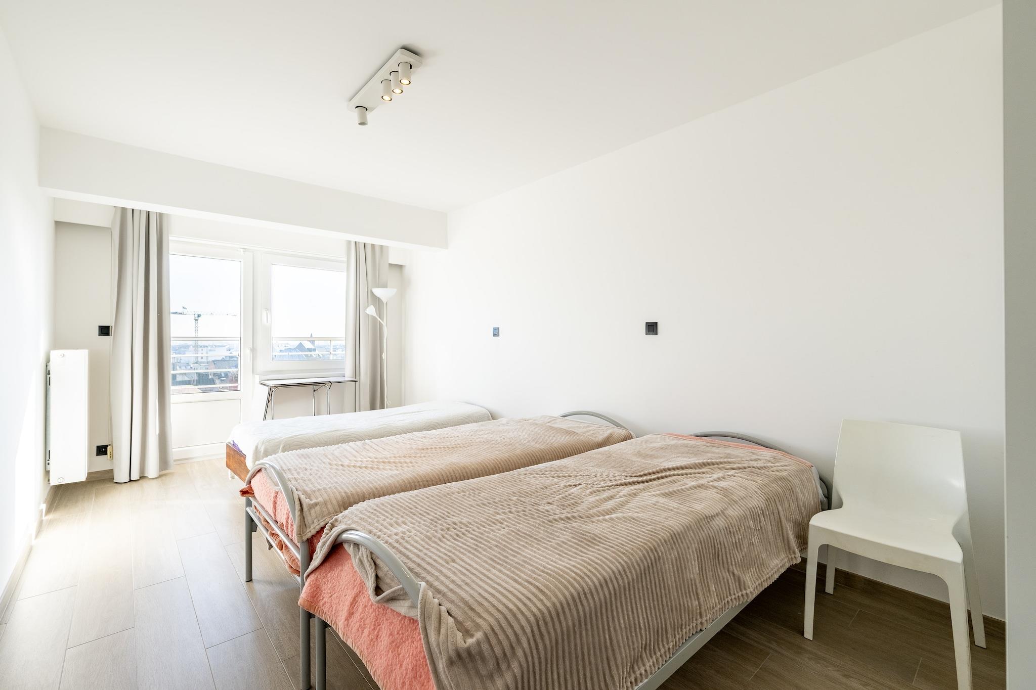 Belägen på 7:e våningen längs den livliga strandpromenaden Zeedijk, erbjuder denna luftiga lägenhet den perfekta kustnära tillflyktsorten för familjer eller grupper på upp till fem personer. Dess dubbla terrasser inramar panoramautsikt över havet och släpper in ljus från båda sidor, vilket skapar en välkomnande atmosfär. Med två bekväma sovrum – ett med dubbelsäng, det andra med en blandning av enkelsängar – är det en idealisk inredning för föräldrar, barn eller vänner som reser tillsammans. Inuti är den öppna planlösningen varm och funktionell. Det välutrustade köket inkluderar gasspis, mikrovågsugn, Senseo- och filterkaffebryggare, brödrost, diskmaskin och mer, perfekt för att förbereda enkla frukostar innan du beger dig till stranden bara några steg bort. Centralvärme håller lägenheten mysig, och moderna bekvämligheter som Wi-Fi, platt-TV, DVD/CD-spelare, tvättmaskin och torktumlare säkerställer en smidig och bekväm vistelse. Badrummet har dusch och handfat, medan en separat toalett gör det bekvämt för grupper. Gästerna kommer också att uppskatta de omtänksamma extrafunktionerna som strykbräda, dammsugare och ett separat cykelrum. Även om hissen inte är rullstolsanpassad om den inte är hopfällbar, kompenserar läget för det – mitt i hjärtat av Blankenberge, med enkel tillgång till sevärdheter vid havet, kaféer och shopping. Denna lägenhet är perfekt för rökfria gäster som söker lugn och ro med utsikt och lovar både enkelhet och stil vid havet.