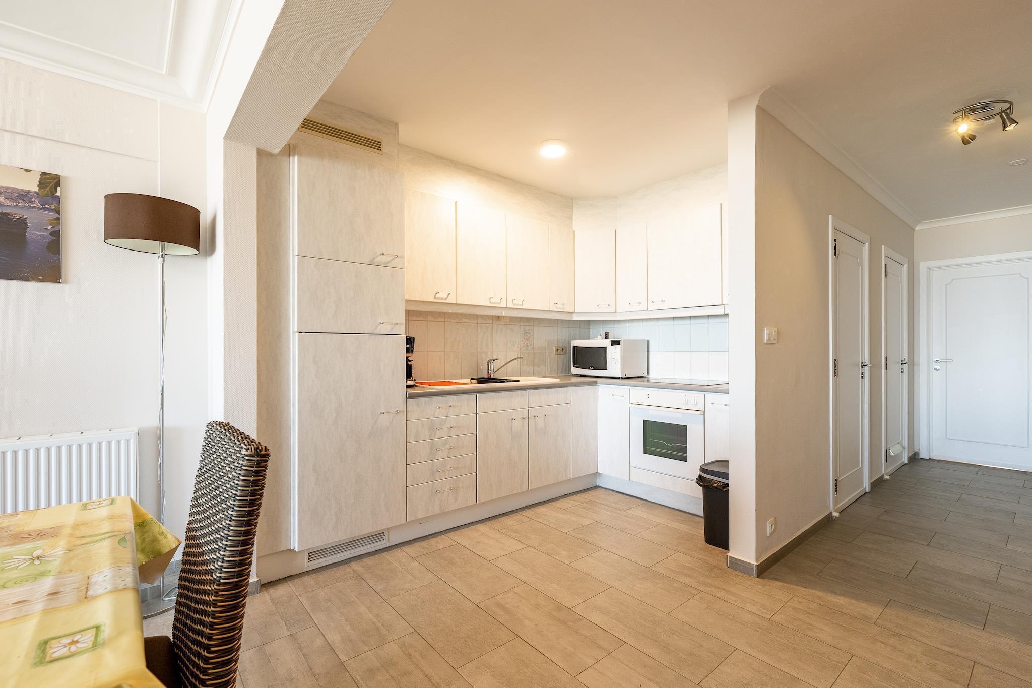 Denna rymliga och bekvämt möblerade lägenhet erbjuder alla nödvändiga bekvämligheter för en avkopplande vistelse på Zeedijk 157. Belägen på andra våningen har den två generösa sovrum – ett med dubbelsäng (1,60 m) och ett med två enkelsängar – med bekväm plats för upp till 6 gäster. Det renoverade badrummet har dusch och handfat, med en separat toalett för extra bekvämlighet. Filtar, dunfiltar, överkast och kuddar finns. Njut av den friska havsluften och utsikten från de främre och bakre terrasserna, båda möblerade för din komfort. Det fullt utrustade köket har elektrisk spis, mikrovågsugn, kylskåp med frys, kaffebryggare (filter), vattenkokare, termos, mixer och alla nödvändiga köksredskap. Vardagsrummet har en platt-TV med kabel- och digitalkanaler, plus gratis WiFi. Uppvärmning sker via central gasvärme, och förbrukningen betalas genom depositionen. Lägenheten är tillgänglig via hiss (ej lämplig för rullstolsburna om den inte är hopfällbar) och är strikt rökfri. Små husdjur är välkomna på begäran, vilket gör den till ett utmärkt val för resenärer med pälsklingar. Byggnaden erbjuder ett soprum och cykelförvaring. Beläget i ett utmärkt centralt läge, bara några steg från strandpromenaden, det berömda kasinot och många butiker och restauranger. Närliggande attraktioner inkluderar Sea Life Blankenberge-akvariet och det natursköna naturreservatet Uitkerkse Polder, perfekt för promenader med ditt husdjur. Parkering finns i närheten.
