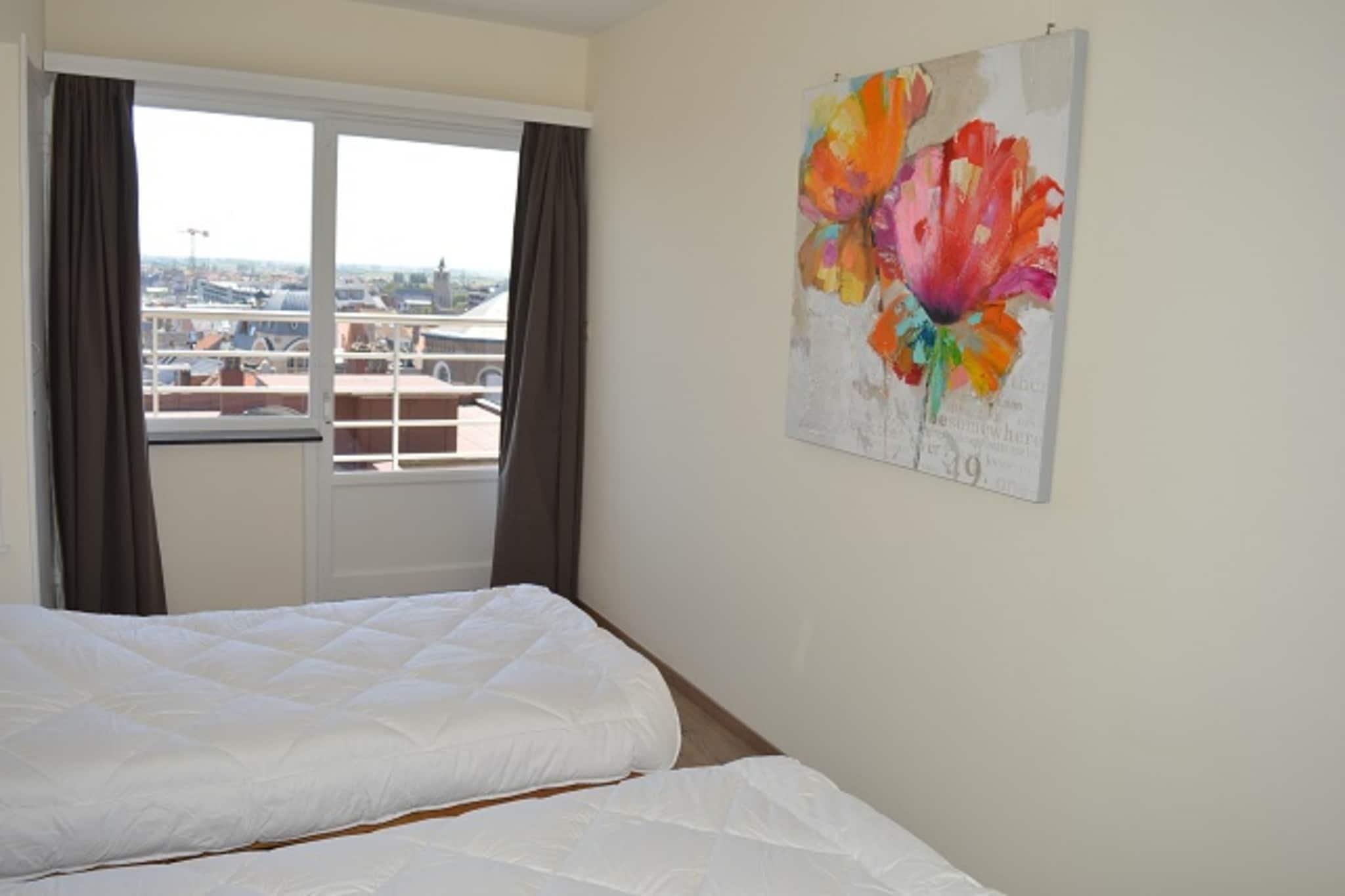 Denna mycket rymliga och mysiga lägenhet ligger på 7:e våningen i ett centralt beläget residens längs Zeedijk i Blankenberge. Med en terrass med havsutsikt framtill och en solig terrass i söderläge baktill erbjuder den den perfekta blandningen av komfort, utrymme och kustnära charm. Lägenheten är perfekt för familjer eller grupper och rymmer upp till 6 gäster. Det finns två sovrum – ett med en dubbelsäng (1,40 m) och ett annat med två enkelsängar – samt en bekväm bäddsoffa i vardagsrummet. Dunfiltar, kuddar och madrasskydd finns. Badrummet är utrustat med badkar/dusch-kombination och handfat, och det finns en separat toalett för extra bekvämlighet. Vardagsrummet och matsalen är ljusa och välkomnande, kompletta med digital-TV, radio och gratis WiFi. Köket har en elektrisk spis, traditionell ugn, mikrovågsugn, kylskåp med frys, filterkaffebryggare, Senseo-maskin, vattenkokare och alla nödvändiga köksredskap. Lägenheten värms upp med central gasvärme och en elpanna, och energikostnaderna betalas via deposition. Lägenheten är rökfri och husdjur är inte tillåtna. Hiss finns tillgänglig (ej lämplig för rullstolar om den inte är hopfällbar), och gäster kan använda cykel- och soprummet i byggnaden. Centralt beläget nära stranden, piren, kasinot och shoppinggatorna, erbjuder denna lägenhet den perfekta basen för en avkopplande semester vid havet med allt inom räckhåll.