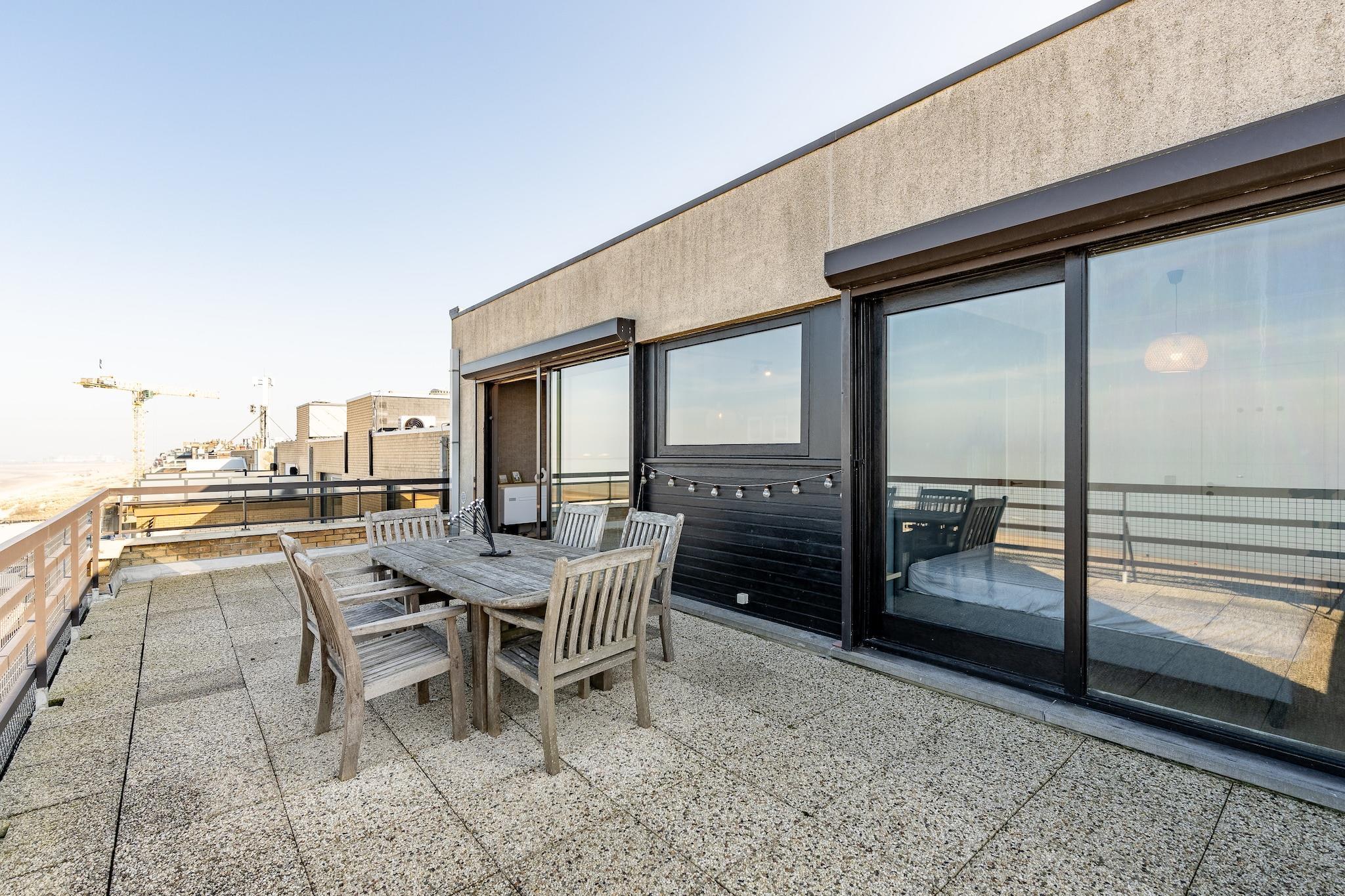 Upptäck en modern och elegant takvåning belägen på 11:e våningen i Zeedijk 180, där rymd, ljus och fantastisk utsikt kombineras för en oförglömlig kustnära tillflyktsort. Denna luftiga, vackert inredda lägenhet erbjuder tre rymliga sovrum – alla med en mysig 1,60 m dubbelsäng – perfekt för upp till sex gäster som söker komfort och elegans vid havet. Gå ut till två magnifika takterrasser: en terrass på framsidan med hisnande panoramautsikt över piren och det glittrande havet, och en solig terrass på baksidan med öppen utsikt över det fridfulla inlandet. Båda terrasserna är möblerade för avkoppling och måltider utomhus, vilket skapar den perfekta miljön för morgonkaffe eller kvällssolnedgångar. Inuti kan du njuta av två moderna badrum – ett med dusch och toalett, plus ett extra separat duschrum och gästtoalett för extra bekvämlighet. Det fullt utrustade köket inbjuder dig att laga dina favoritmåltider med sin keramikhäll, dubbelkombinationsugn, kyl/frys, diskmaskin och kaffebryggare. Ytterligare bekvämligheter inkluderar elvärme, wifi, platt- och digital-TV, tvättmaskin och alla nödvändiga rengöringsartiklar. Enkel åtkomst via hiss upp till 10:e våningen, med bara en trappa för att nå takvåningen. Centralt beläget på Zeedijk, bara några minuter från den livliga piren, vackra stränder, sanddyner och lokala butiker – allt som kusten har att erbjuda finns precis utanför dörren. Detta rökfria, husdjursfria hem garanterar en lugn vistelse i en förstklassig kustmiljö.