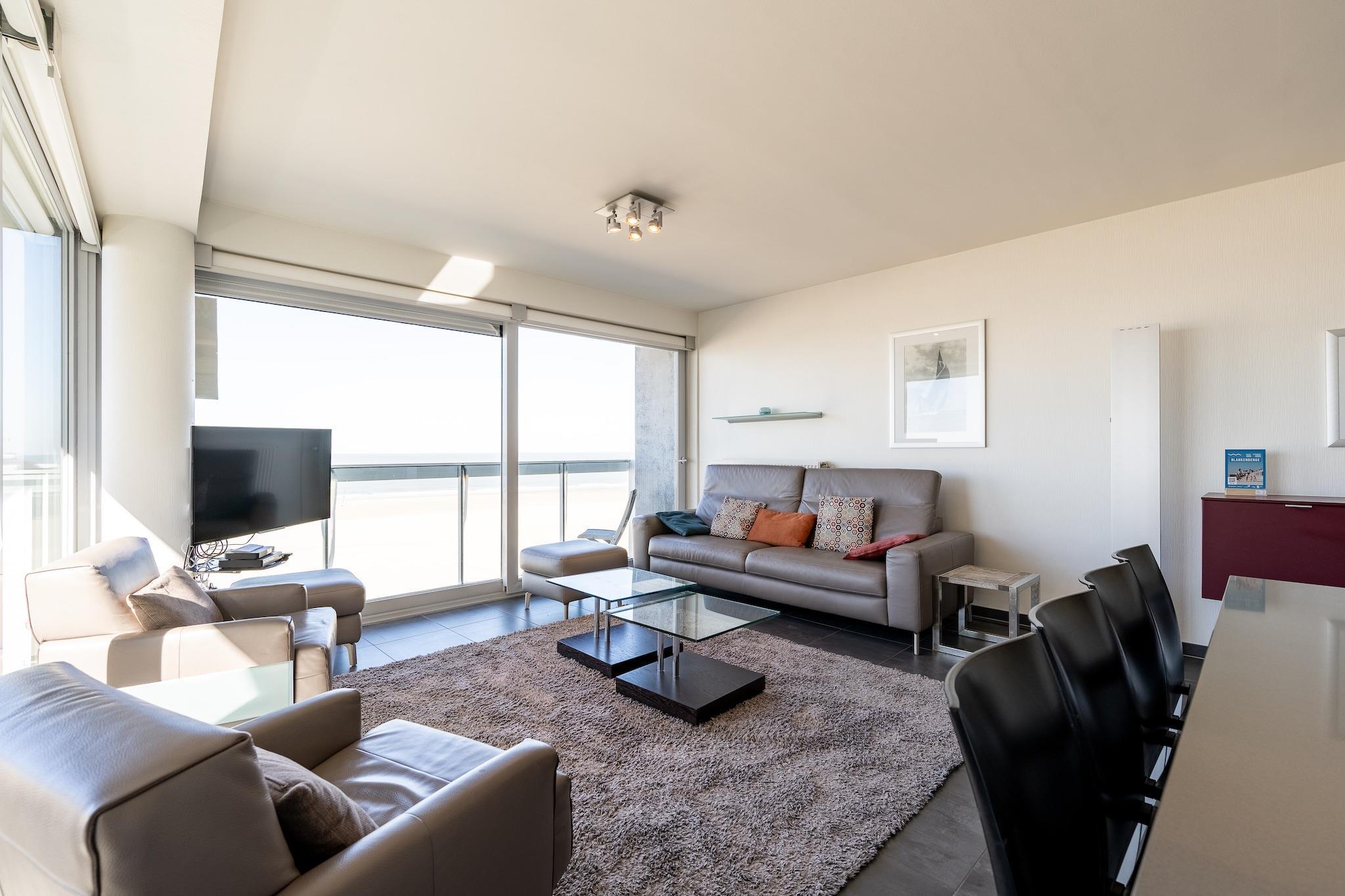 Denna rymliga och stilfullt möblerade lägenhet med 3 sovrum erbjuder en lyxig kusttillflykt med vidsträckt utsikt över havet, den ikoniska piren och de böljande sanddynerna. Perfekt belägen på De Saedeleerhelling 2, bara några steg från stranden och nära den livliga strandpromenaden, är den idealisk för familjer eller grupper på upp till 7 gäster. Det ljusa vardagsrummet öppnar upp mot en möblerad terrass där du kan njuta av den salta brisen. Inuti har lägenheten tre välutrustade sovrum: ett med en enkelsäng och våningssäng, och två med bekväma dubbelsängar (1m60). Dunfiltar, kuddar och madrasskydd finns. Två badrum garanterar bekvämlighet: ett med badkar/dusch-kombination och handfat, plus ett separat duschrum. En gästtoalett är också separat för extra avskildhet. Det moderna köket är fullt utrustat med keramikhäll, kombinerad ugn, stort kylskåp med frys, diskmaskin, kaffebryggare (filter), vattenkokare, brödrost, mixer och alla viktiga köksredskap – perfekt för att laga familjemåltider efter en dag på stranden. Du får också tillgång till gratis Wi-Fi, digital-TV med platt-TV, DVD/CD-spelare, tvättmaskin, torktumlare, strykbräda och dammsugare. Lägenheten uppvärms via centralvärme med naturgas och förbrukningen betalas via depositionen. Lägenheten ligger på 5:e våningen och är tillgänglig med en rullstolsanpassad hiss. Observera: rökfritt, inga husdjur tillåtna. En garagebox i närheten finns att hyra på begäran. All charm som den belgiska kusten har vid din tröskel – från sanddyner och hav till det livliga pirområdet och familjevänliga sevärdheter.