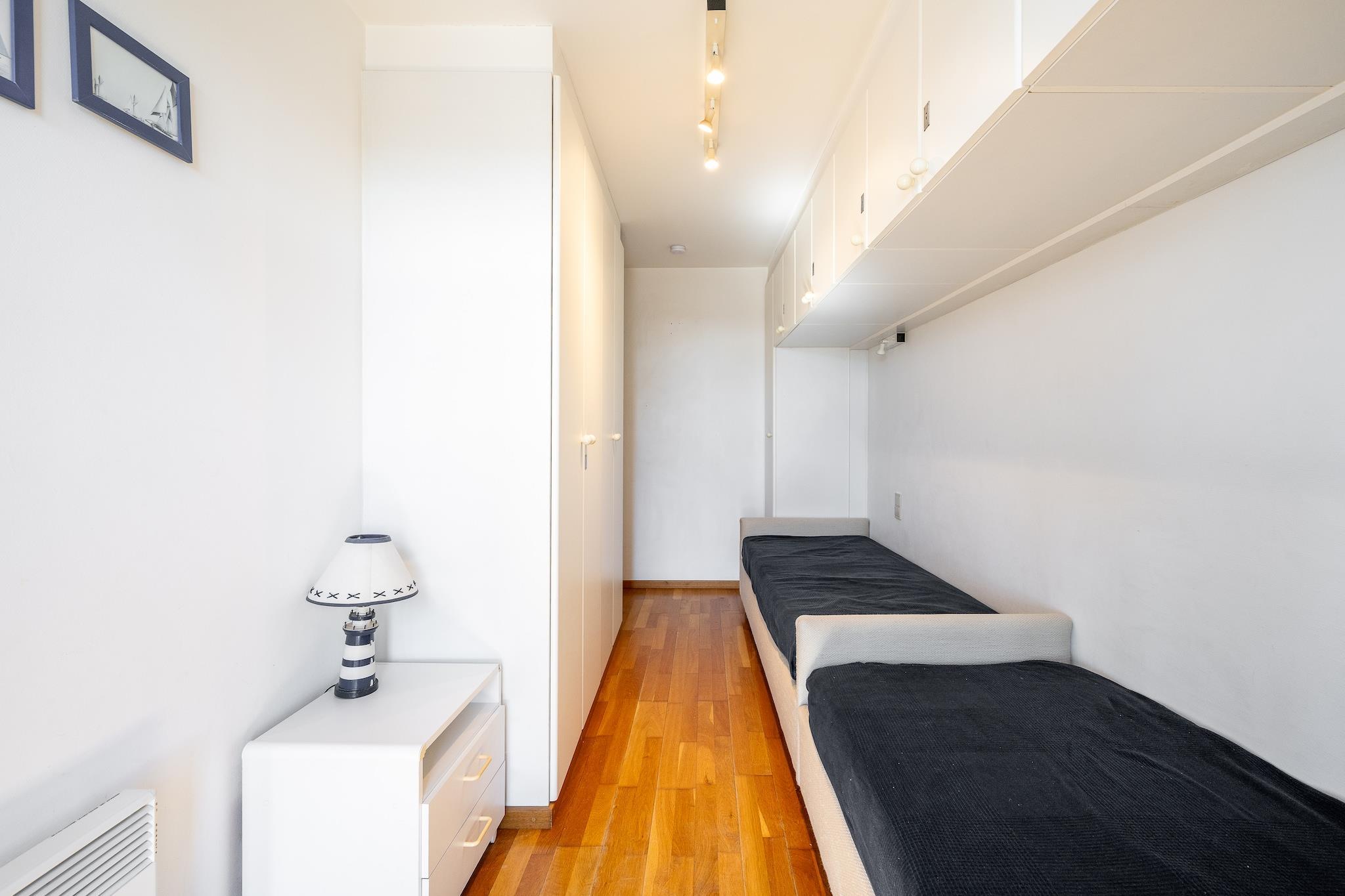Denna ljusa och rymliga lägenhet med 3 sovrum är en perfekt kustnära tillflyktsort för upp till 6 gäster. Idealiskt belägen längs Zeedijk, kan du njuta av vidsträckt havsutsikt från den stora terrassen, samtidigt som du bara är bara några steg från stranden, Blankenberges livliga shoppinggator, piren och kasinot. Lägenheten är översvämmad med naturligt ljus och erbjuder en varm och inbjudande atmosfär med moderna bekvämligheter. Den rymliga planlösningen inkluderar tre bekväma sovrum: två med dubbelsängar och ett med två enkelsängar - perfekt för familjer eller små grupper. Det finns två badrum för extra bekvämlighet: ett med badkar och handfat, det andra med dusch och handfat. En separat toalett ger extra praktisk funktionalitet. Alla nödvändigheter som täcken, kuddar och madrasskydd finns. Det fullt utrustade köket har keramikhäll, ugn, mikrovågsugn, kylskåp med frys, diskmaskin, kaffebryggare (filter), vattenkokare och alla nödvändiga köksredskap - perfekt för att laga mat hemma. Håll dig uppkopplad med Wi-Fi och varva ner med digital-TV. Lägenheten har även tvättmaskin, dammsugare, strykjärn och rengöringsartiklar. Den värms upp via elvärme, där förbrukningen dras av från depositionen. Tillgänglig via hiss (ej lämplig för icke-hopfällbara rullstolar). Rökfritt. Husdjur är inte tillåtna. Garageuthyrning finns i närheten – ett stort plus i den livliga stadskärnan! Oavsett om du är här för avkoppling vid stranden eller för att utforska kustnära sevärdheter, erbjuder denna lägenhet den perfekta basen.