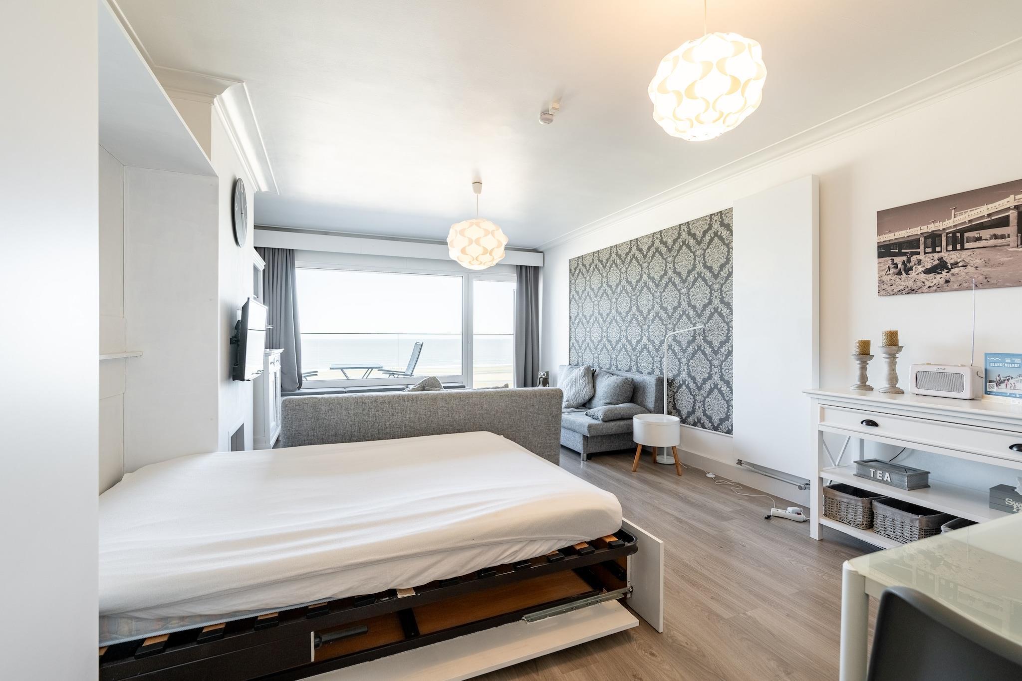 Njut av charmen och komforten i denna moderna, centralt belägna studio på fjärde våningen, perfekt utformad för en avkopplande vistelse vid havet. Med plats för upp till 2 gäster har studion inte en, utan två terrasser – en med fantastisk havsutsikt och en annan i söderläge, perfekt för att njuta av solen hela dagen. Boendet är utrustat med en bekväm hopfällbar säng för två, tillsammans med dunfiltar, kuddar och madrasskydd för en god natts sömn. Badrummet har dusch, handfat och toalett. Ett välutrustat kök erbjuder allt du behöver, inklusive keramikhäll, traditionell ugn, mikrovågsugn, kylskåp med frys, filterkaffebryggare, Senseo, vattenkokare, termos, croque-maskin och köksredskap. Uppvärmning sker via naturgas och elpanna, och förbrukningen betalas via deposition. Ytterligare bekvämligheter inkluderar platt-TV, kabelkanaler, radio, Chromecast, dammsugare och rengöringsmedel. Även om det inte finns Wi-Fi, kompenserar den lugna miljön och moderna bekvämligheterna mer än väl för det. Studion är tillgänglig via hiss (ej lämplig för rullstolar om den inte är hopfällbar). Den är rökfri och husdjur är inte tillåtna. Det finns ett soprum och cykelförvaring i byggnaden, vilket gör detta till en idealisk och problemfri bas för din kustsemester.
