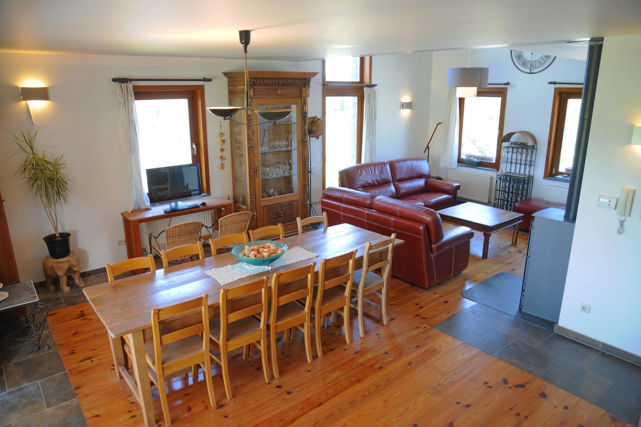 Bottenvåningen: (Vardagsrum(TV(kabel, platt-tv), matbord, Braskamin(trä), DVD-spelare, speldator), öppet kök(matbord, spis(gas), kaffebryggare(kaffekapslar), ugn, mikrovågsugn, diskmaskin, kylskåp, frys), inglasat uterum(sitthörna)) På våning 1: (sovrum(dubbelsäng), sovrum(dubbelsäng), sovrum(4x enkelsäng, TV(kabel), sitthörna, DVD-spelare), badrum(badkar, dusch(Duschkabin), 2x handfat, toalett ), Bäddsoffa 1 pers.) Källare: (aktivitetsrum(sitthörna, fotbollsspel), relaxavdelning(dusch(Duschkabin), bastu(privat))) veranda, torktumlare, tvättmaskin, värme(central, gas), terrass, trädgård, trädgårdsmöbler, grill, parkering
