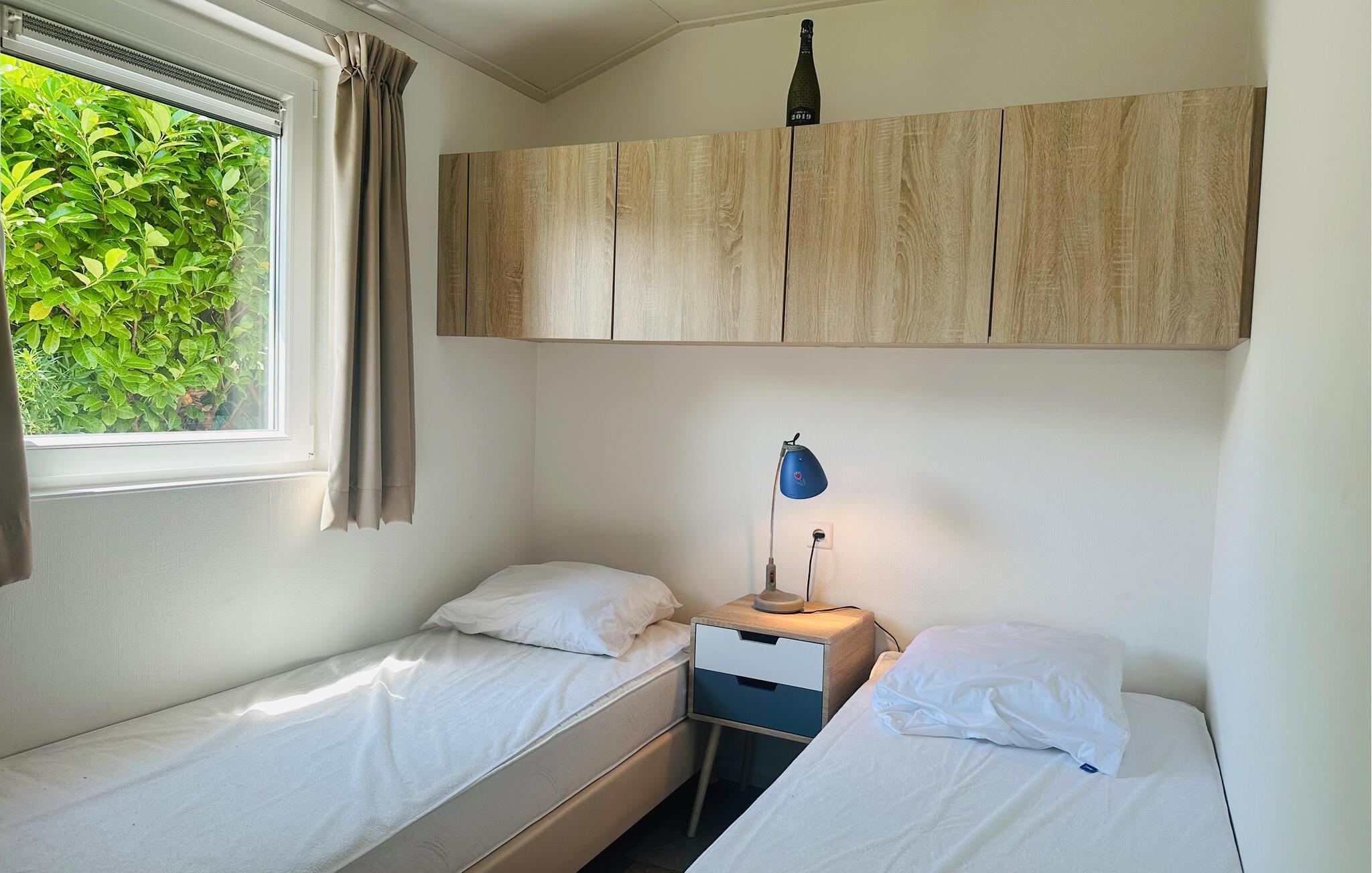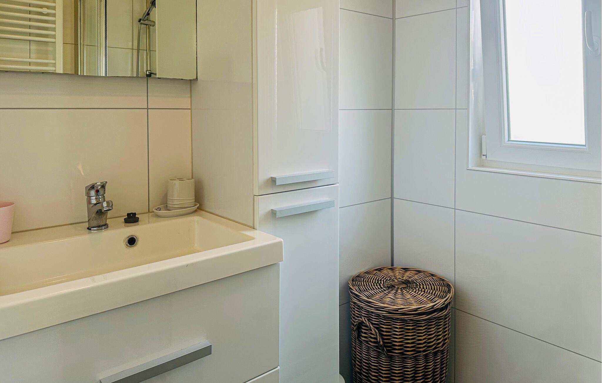 Ditt kompakta och praktiskt inredda semesterhus innehåller de viktigaste elementen för en trevlig vistelse. Det ligger på en välskött campingplats med en stor lekplats och en sjö för fiske inom gångavstånd. Börja dagen i det välutrustade köket och tillaga en familjefrukost. Efteråt kan du njuta av sällskapliga stunder vid matbordet. Den mysiga soffgruppen med utsikt över trädgården är perfekt för roliga spel eller avkopplande filmkvällar. Utanför kan du tillbringa glada kvällar i trevligt sällskap på den mysiga terrassen eller njuta av din lediga semestertid med en kopp kaffe.