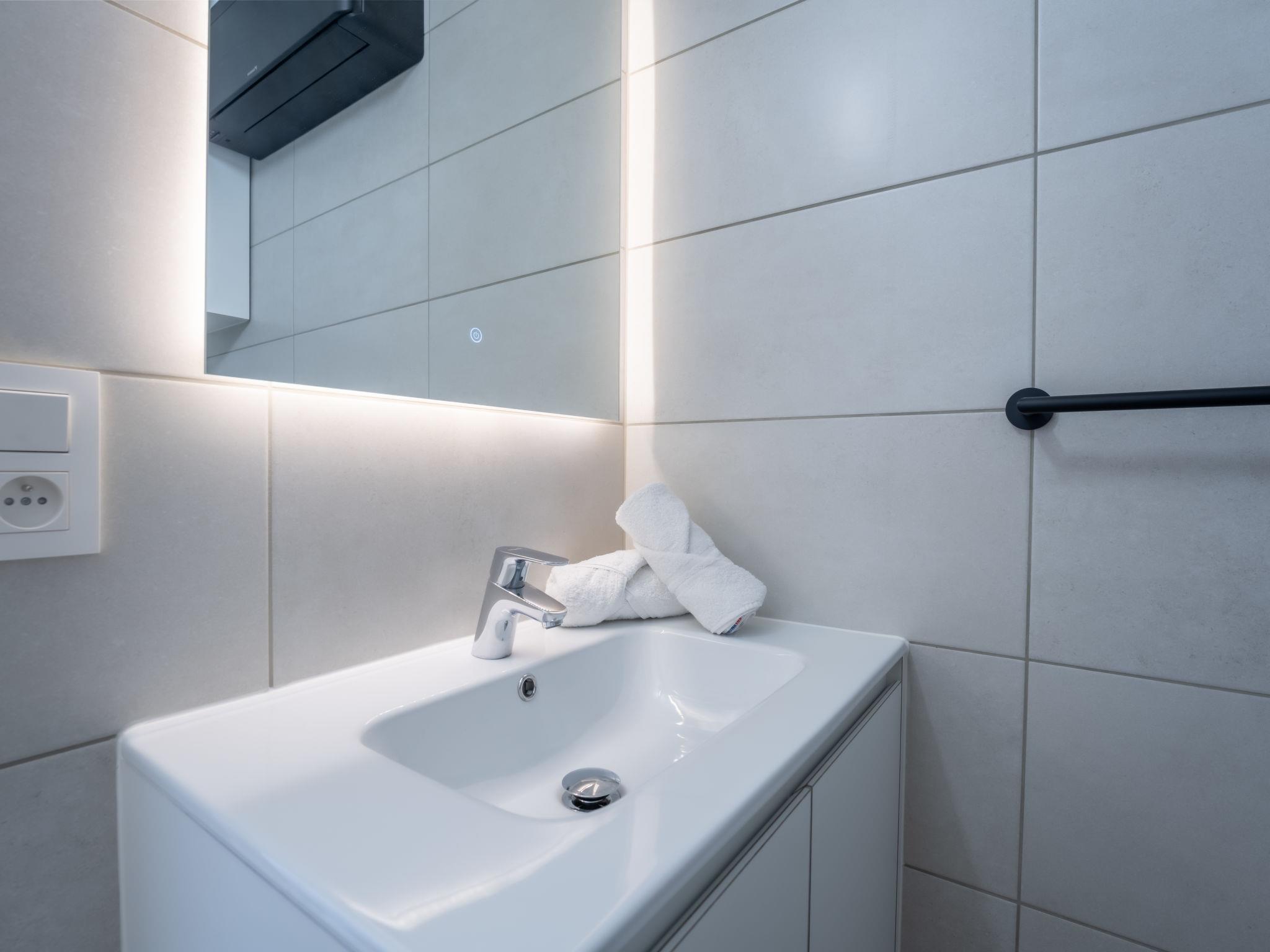 "Studio Zeezicht", 1-room studio 25 m2 on 9th floor. Bright, renovated in 2025, practical and modern furnishings: living/sleeping room with 1 fold-away bed (160 cm, length 200 cm), dining table, TV, international TV channels and air conditioning. Exit to the balcony. Kitchenette (dishwasher, 4 ceramic glass hob hotplates, toaster, kettle, electric coffee machine, combination microwave). Shower/WC. Heating. Balcony 3 m2, north-east facing position. Balcony furniture. Panoramic view of the sea, the countryside and the resort. Facilities: hair dryer. Internet (WiFi, free). Please note: non-smoking house, no parking. Maximum 1 pet/ dog allowed. Smoke alarm, fire extinguisher. BE8450.410.12