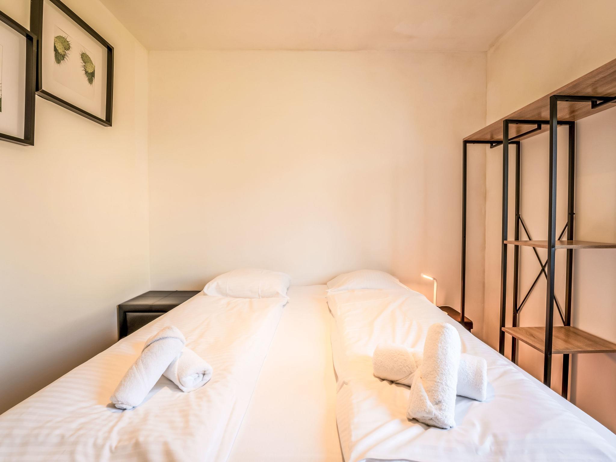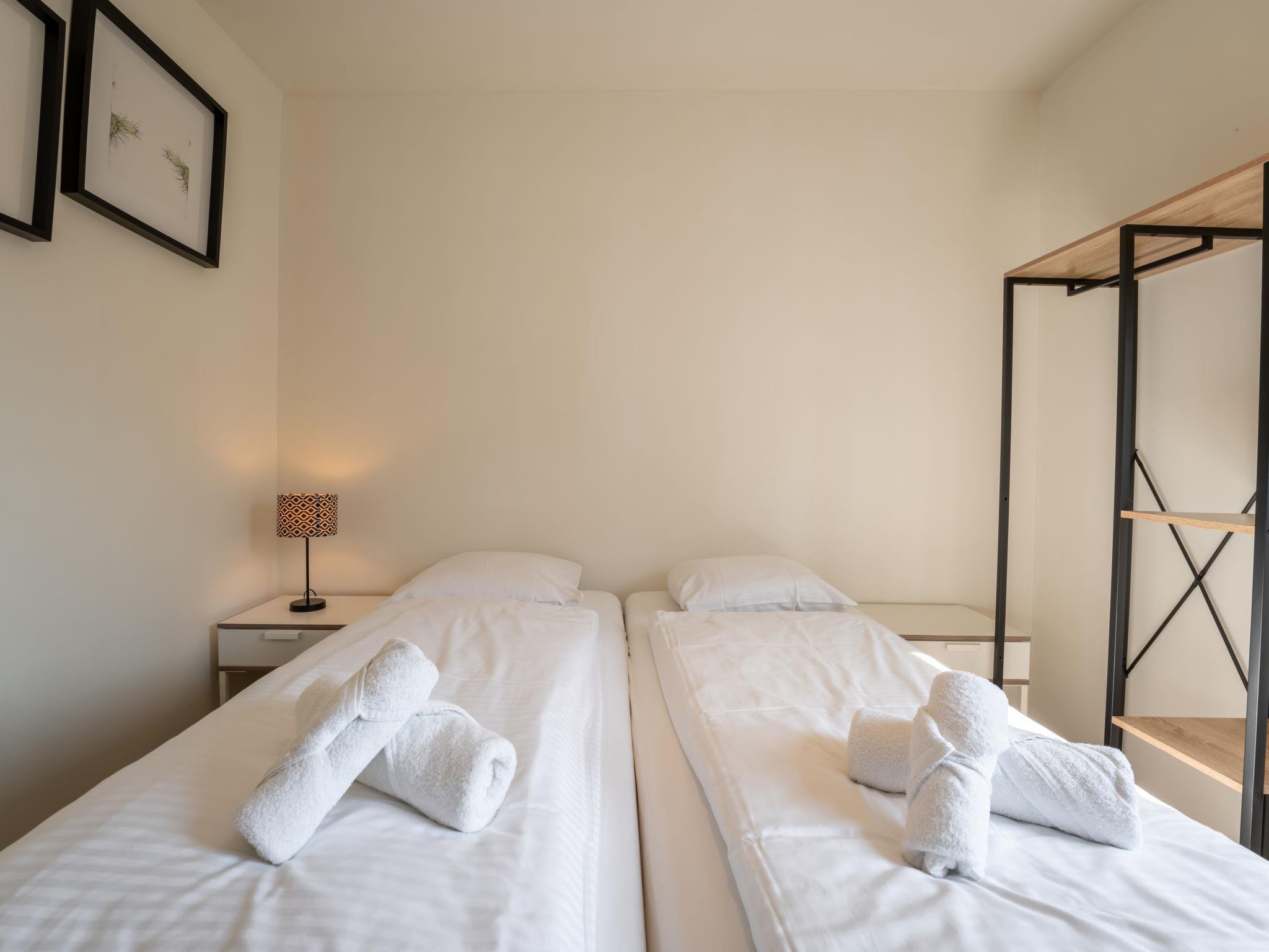 "New dahlia park 6", 3-room house 44 m2. Comfortable and modern furnishings: open living/dining room with dining table, separate WC, digital TV, international TV channels and air conditioning. Exit to the terrace. 1 double bedroom with 1 bed (160 cm, length 200 cm), shower/WC. 1 double bedroom with 2 beds (80 cm, length 200 cm), shower. Open kitchen (dishwasher, 4 induction hot plates, toaster, kettle, freezer, electric coffee machine, combination microwave). Heating. Terrace furniture. Facilities: hair dryer. Internet (WiFi, free). Parking (1 car). Please note: non-smoking house. Maximum 1 pet/ dog allowed. TV only NL, FR. Smoke alarm, fire extinguisher.