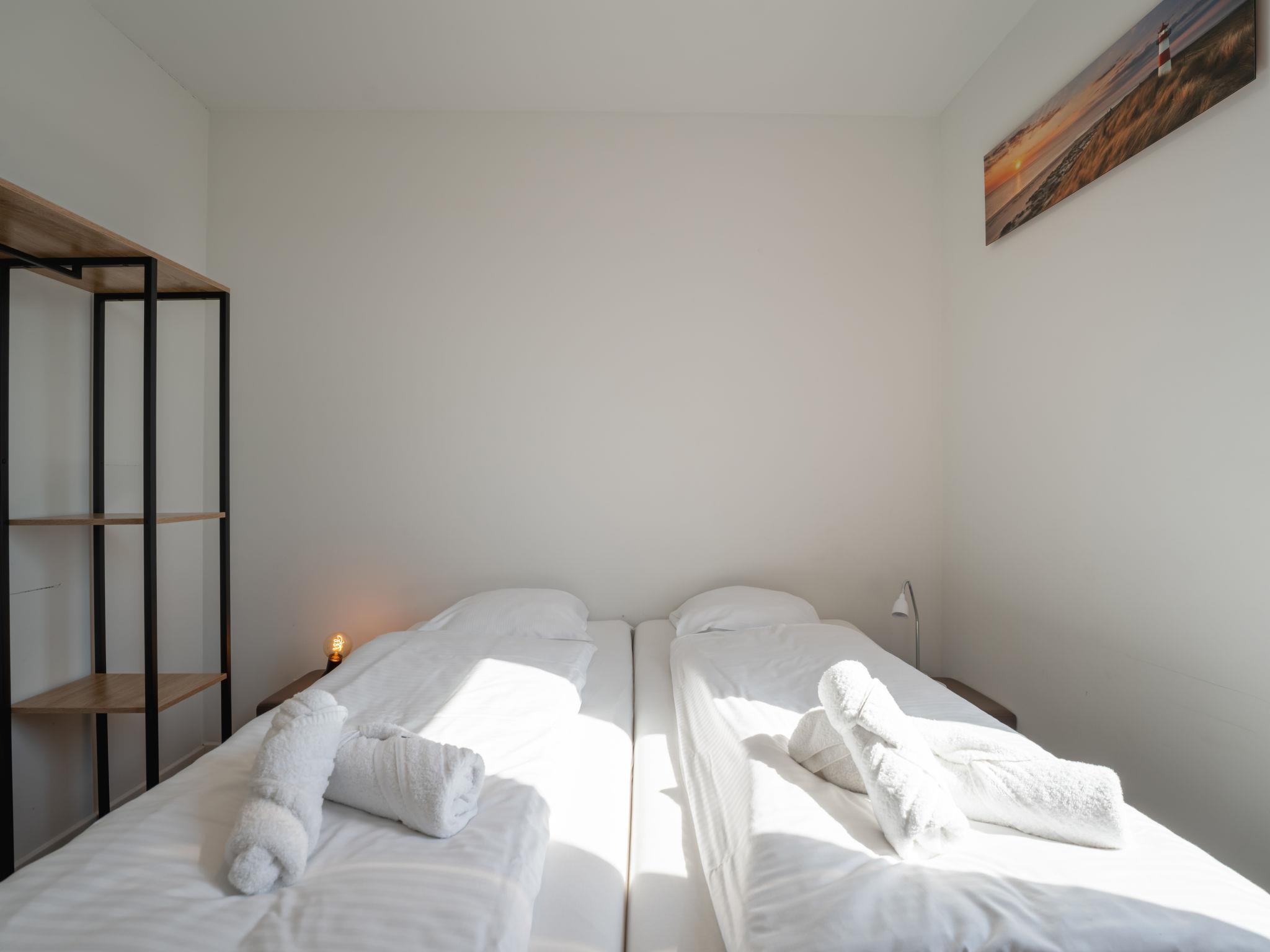 "New Dahlia 8", 3-room chalet 44 m2. Comfortable and modern furnishings: open living/dining room with dining table, separate WC, digital TV, international TV channels and air conditioning. Exit to the terrace. 1 double bedroom with 1 double bed (160 cm, length 200 cm), shower/WC. 1 double bedroom with 2 beds (80 cm, length 200 cm), shower. Open kitchen (dishwasher, 4 induction hot plates, toaster, kettle, freezer, electric coffee machine, combination microwave). Heating. Terrace furniture. Facilities: hair dryer. Internet (WiFi, free). Parking (1 car). Please note: non-smoking house. Maximum 1 pet/ dog allowed. TV only NL, FR. Smoke alarm, fire extinguisher.
