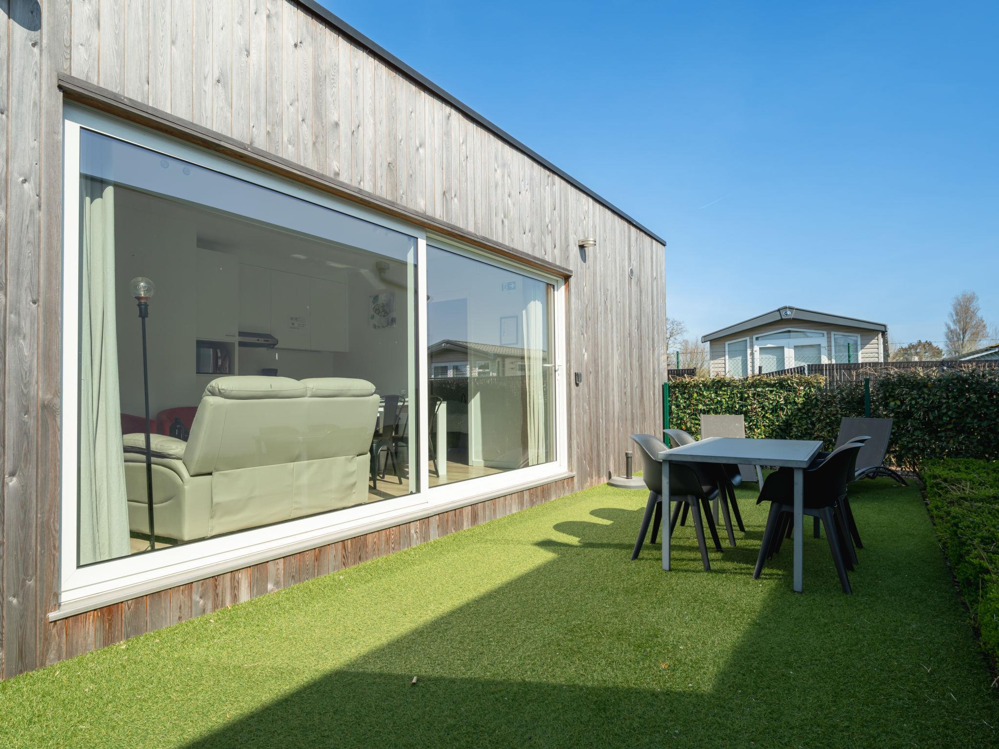 "New Dahlia park 16", 3-room chalet 44 m2. Comfortable and modern furnishings: living/dining room with dining table, separate WC, international TV channels and air conditioning. Exit to the terrace. 1 double bedroom with 1 double bed (160 cm, length 200 cm), hand-basin and shower/WC. 1 double bedroom with 2 beds (80 cm, length 200 cm), hand-basin and shower. Open kitchen (dishwasher, 4 induction hot plates, toaster, kettle, freezer, electric coffee machine, combination microwave). Heating. Terrace furniture. Facilities: hair dryer. Internet (WiFi, free). Parking (1 car). Please note: non-smoking house. Maximum 1 pet/ dog allowed. TV only NL, FR. Smoke alarm, fire extinguisher.