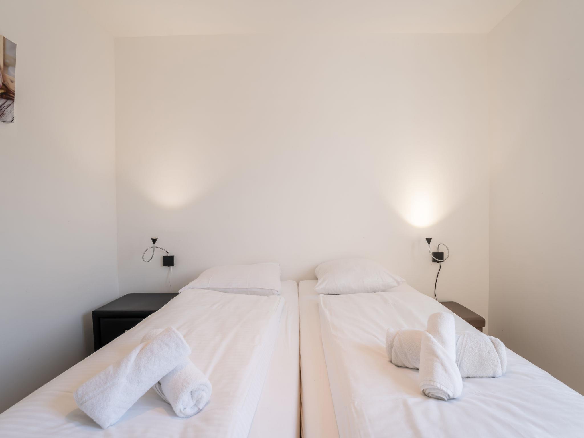 "New Dahlia 1", 3-room chalet 44 m2. Comfortable and modern furnishings: open living/dining room with dining table, digital TV, international TV channels and air conditioning. Exit to the terrace. 1 double bedroom with 1 double bed (160 cm, length 200 cm), hand-basin and shower/WC. 1 double bedroom with 2 beds (80 cm, length 200 cm), hand-basin and shower. Open kitchen (dishwasher, 4 induction hot plates, toaster, kettle, electric coffee machine, combination microwave). Sep. WC. Heating. Terrace furniture. Facilities: hair dryer. Internet (WiFi, free). Parking (1 car). Please note: non-smoking house. Maximum 1 pet/ dog allowed. TV only NL, FR. Smoke alarm, fire extinguisher.