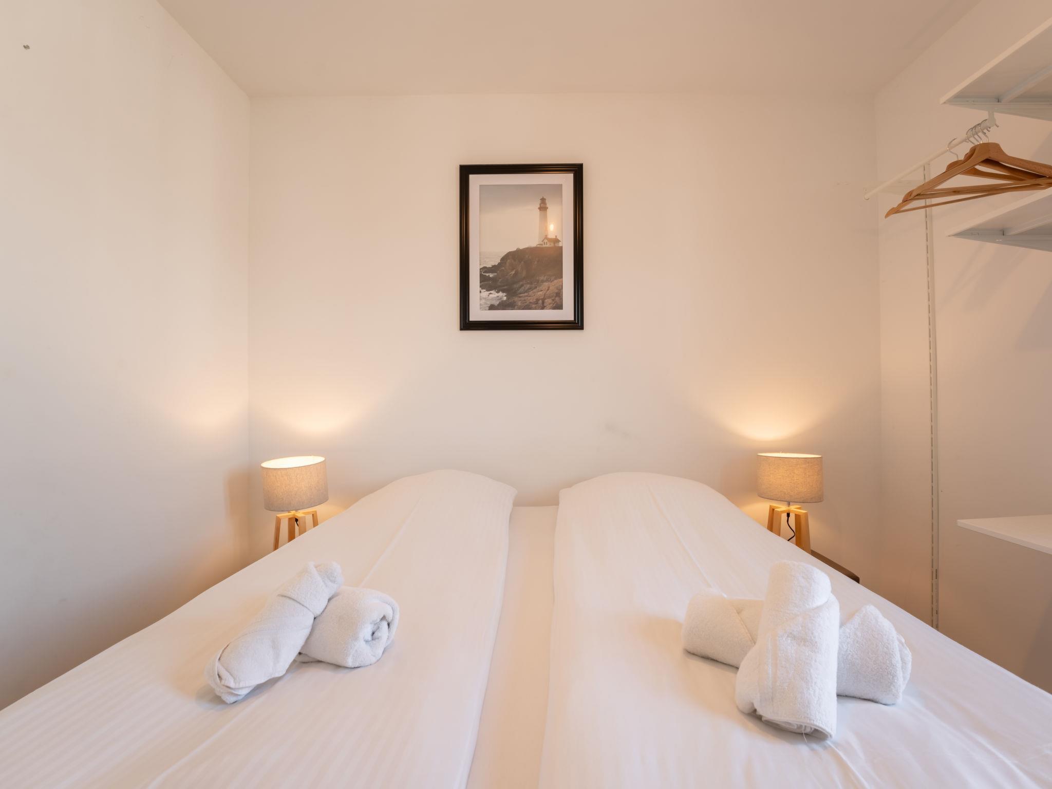 "New Dahlia 17", 3-room chalet 44 m2. Comfortable and modern furnishings: open living/dining room with dining table, international TV channels and air conditioning. Exit to the terrace. 1 double bedroom with 1 double bed (160 cm, length 200 cm), hand-basin and shower/WC. 1 double bedroom with 2 beds (80 cm, length 200 cm), hand-basin and shower. Open kitchen (dishwasher, 4 induction hot plates, toaster, kettle, electric coffee machine, combination microwave). Heating. Terrace furniture. Facilities: hair dryer. Internet (WiFi, free). Parking (1 car). Please note: non-smoking house. Maximum 1 pet/ dog allowed. TV only NL, FR. Smoke alarm, fire extinguisher.